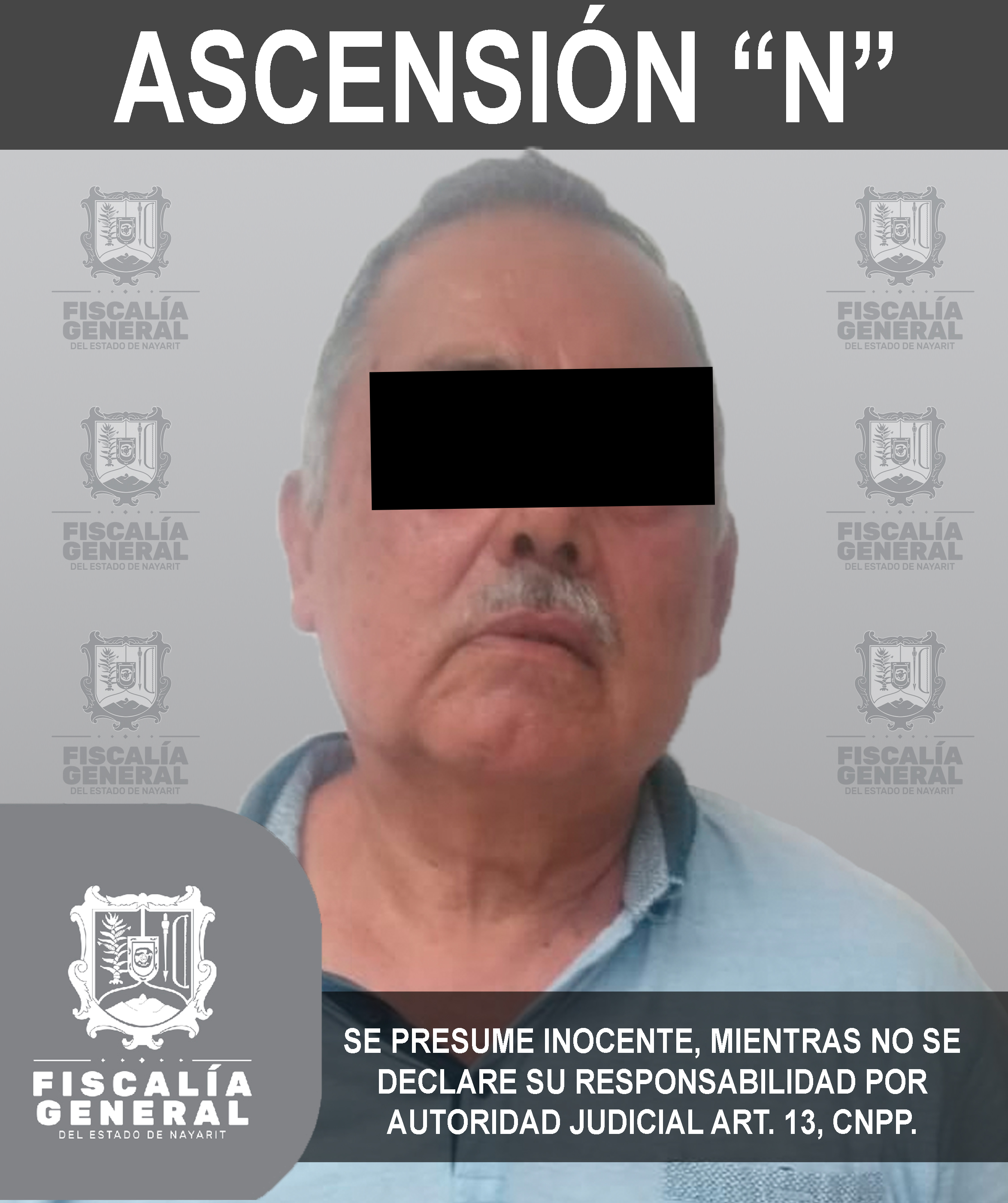 En la localidad Valle de Banderas, municipio de Bahía de Banderas, fue detenido Ascensión “N” de 63 años de edad, originario de Bucerías y vecino de San Vicente, en virtud de haberse librado una orden de aprehensión en su contra, pues se presume...