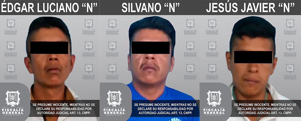 En el municipio de Santa María del Oro, Édgar Luciano “N”, de 31 años de edad; Jesús Javier “N”, de 25 años de edad y Silvano “N”, de 27 años edad, los tres originarios de Santa María del Oro y vecinos de la localidad Picachos, de ese ...