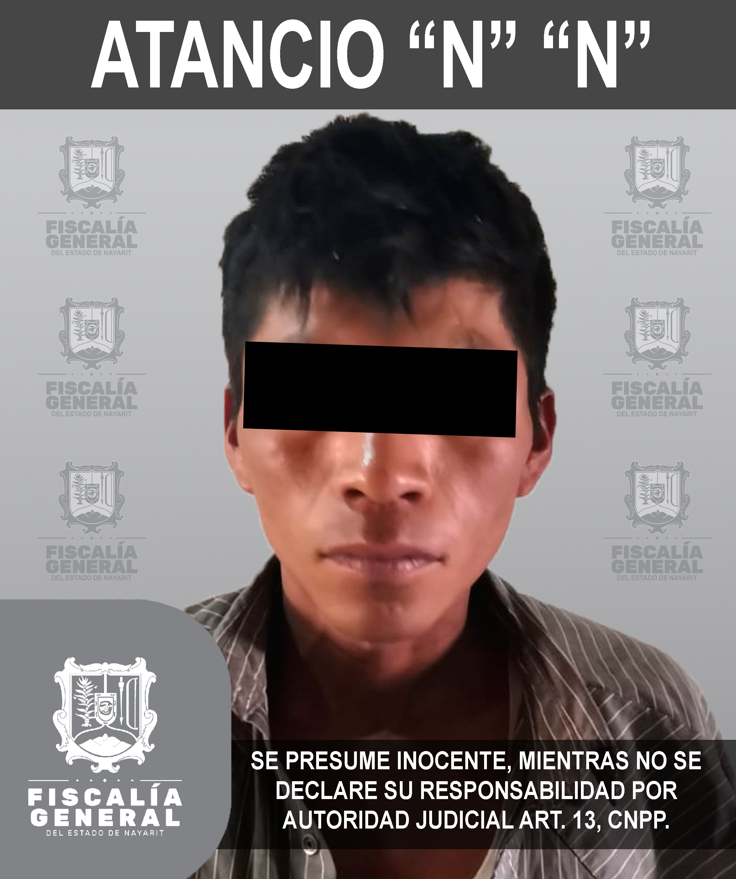 En el poblado de Jesús María, municipio Del Nayar, Atancio “N” “N” fue detenido según orden de aprehensión girada por su probable participación en el delito de homicidio en agravio de una persona de sexo masculino. El detenido fue puesto a d...