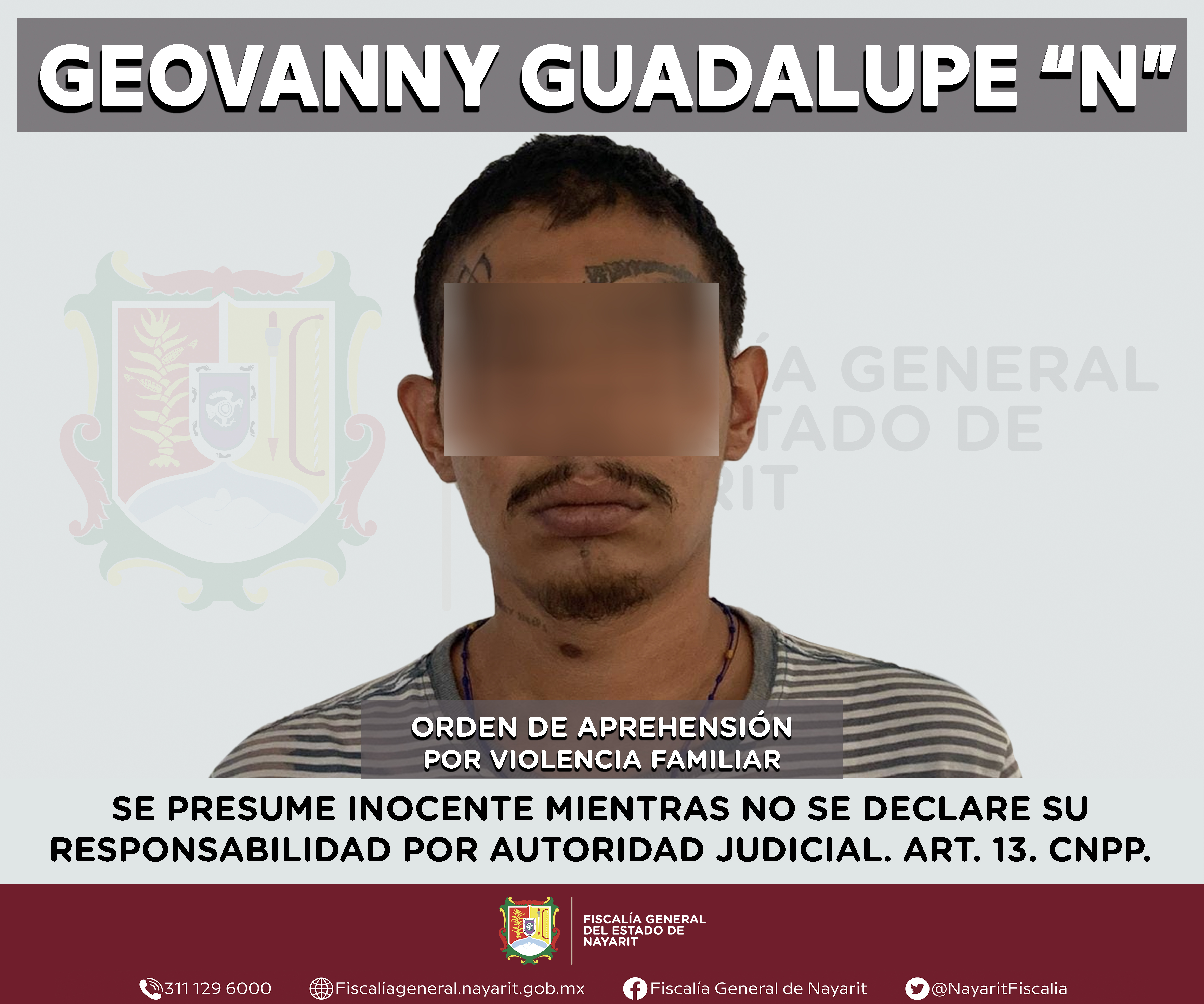 La Fiscalía General de Nayarit a través de la Agencia de Investigación Criminal ejecutó una orden de aprehensión en la ciudad de Tepic contra Luis Ricardo “N”, por su probable participación en hechos que para la ley configuran el delito contra ...