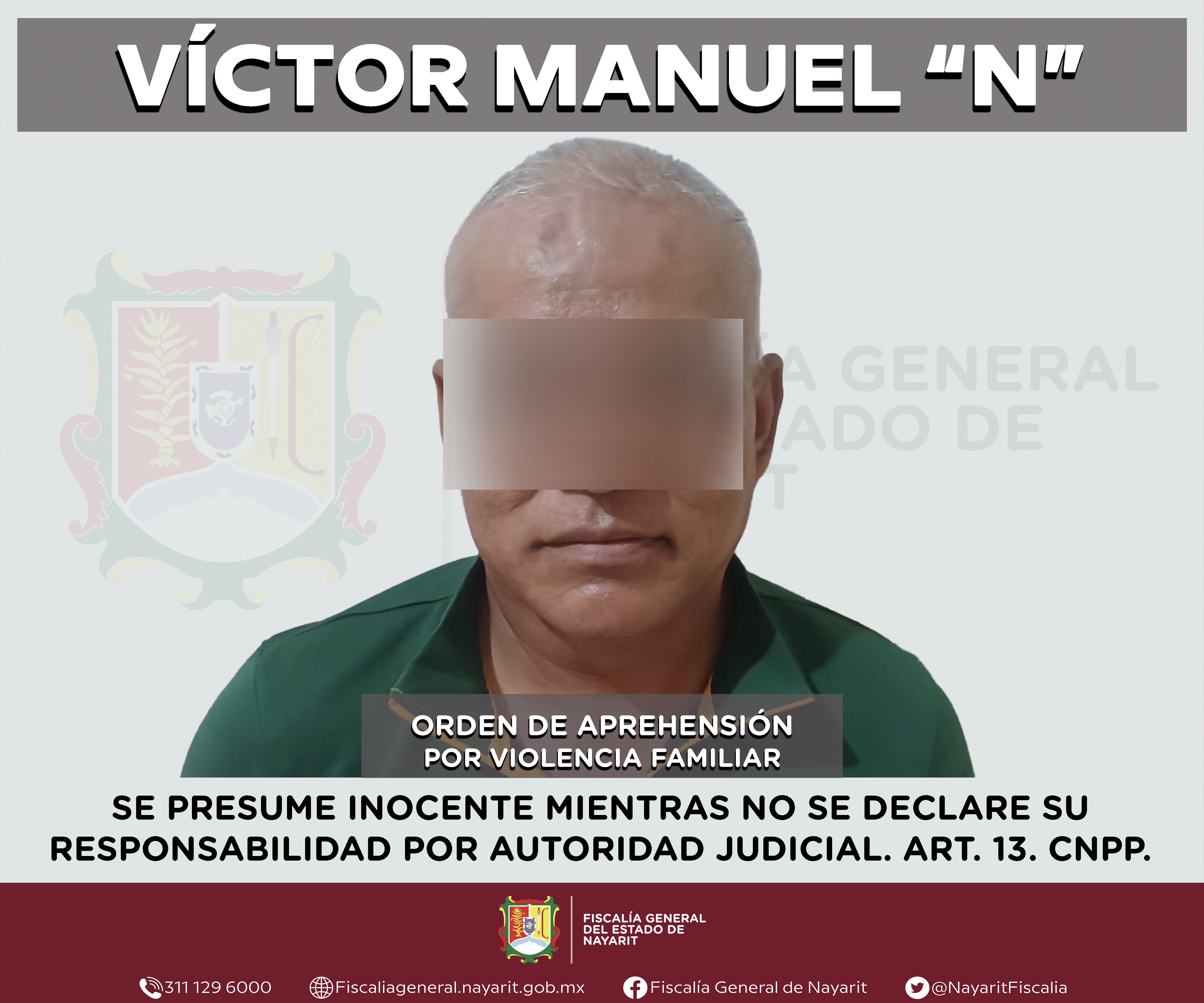 Boletín 1013/2025 | CAPTURADO EN IXTLÁN DEL RÍO POR ABANDONO DE FAMILIARES
