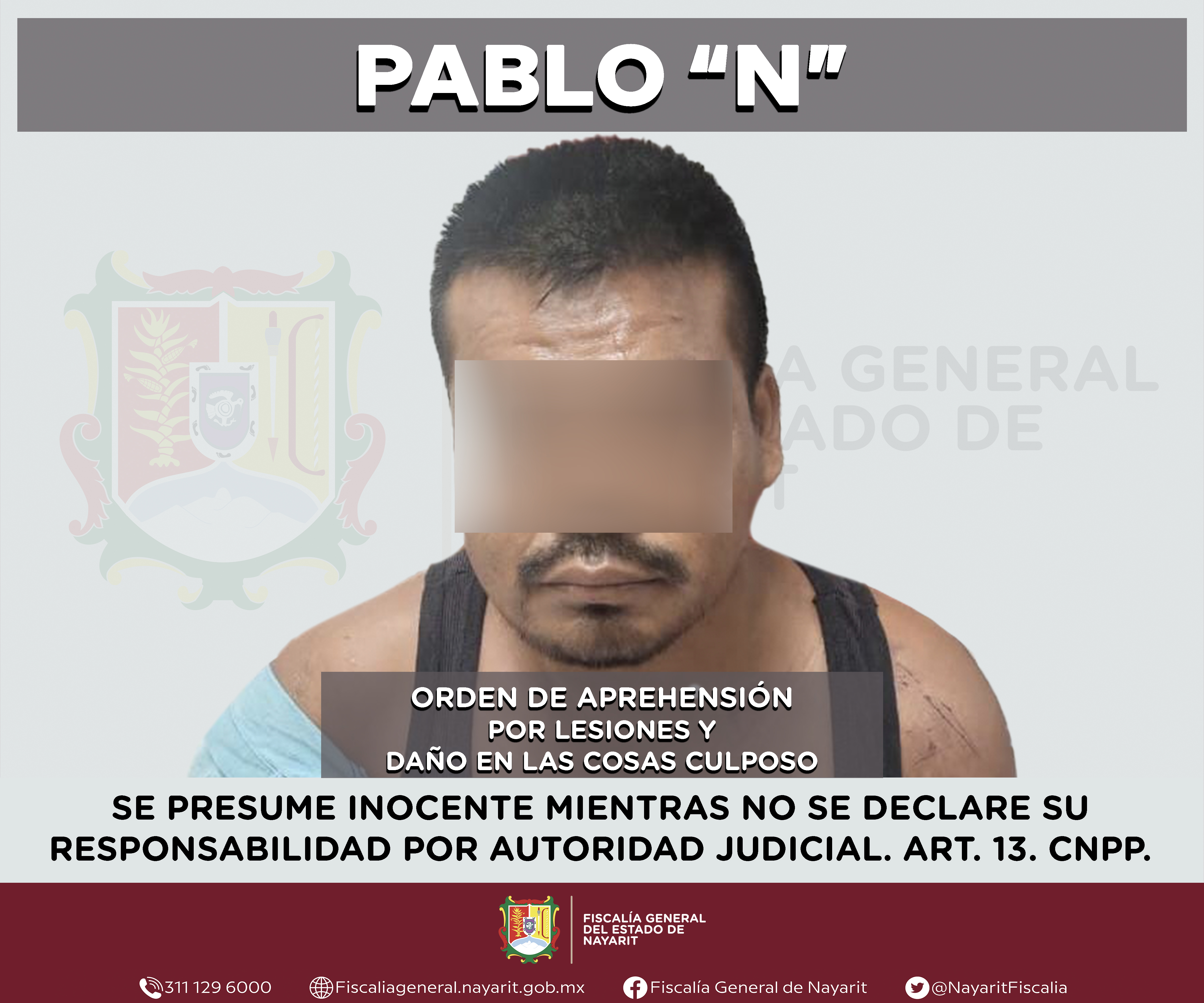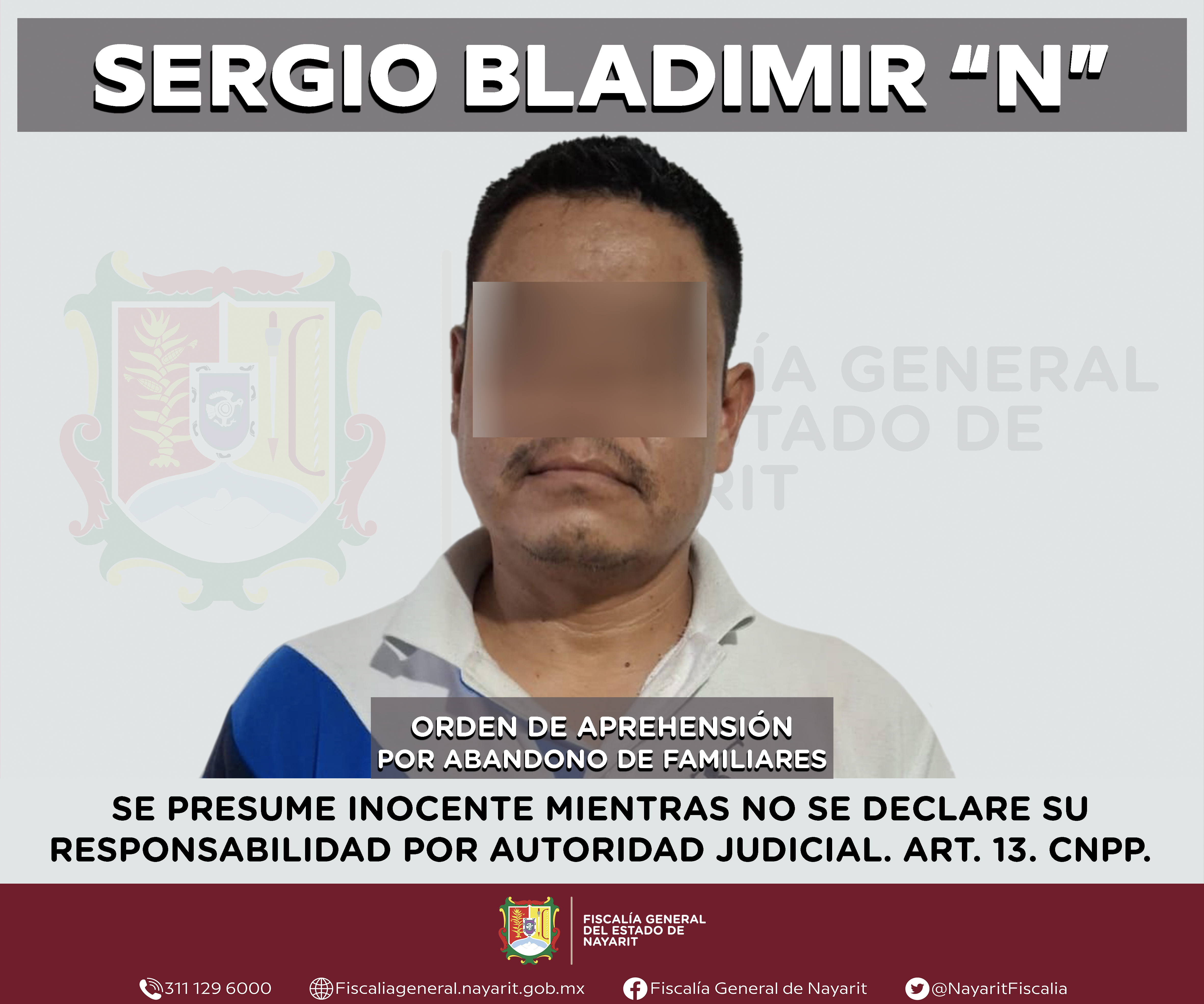 La Fiscalía General de Nayarit a través de la Agencia de Investigación Criminal ejecutó una orden de aprehensión en la ciudad de Tepic contra Israel “N”, por su probable participación en hechos que para la ley configuran el delito de abandono d...