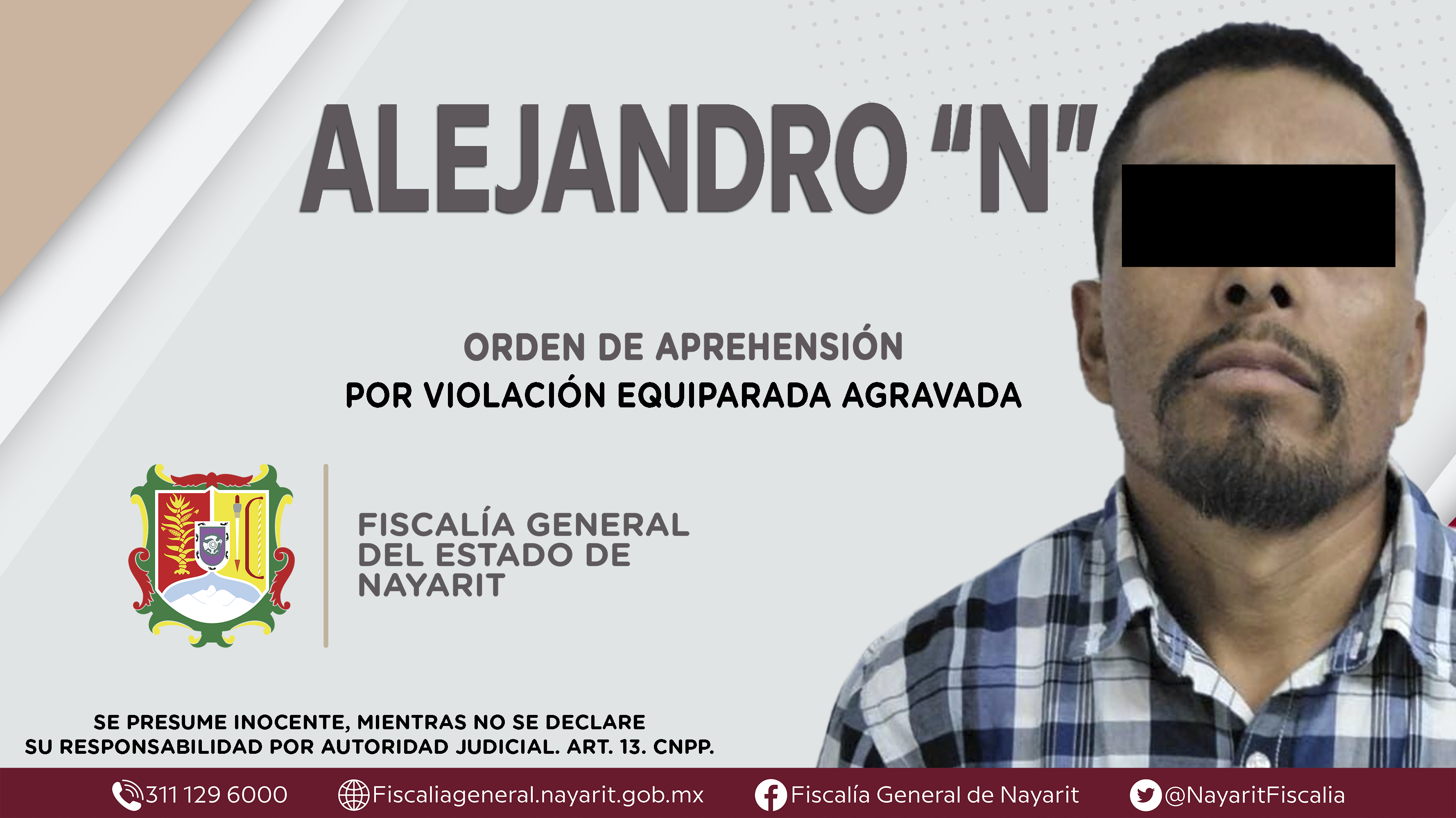 Boletín 0262/2024 | CAPTURADO EN TEPIC POR VIOLACIÓN EQUIPARADA AGRAVADA