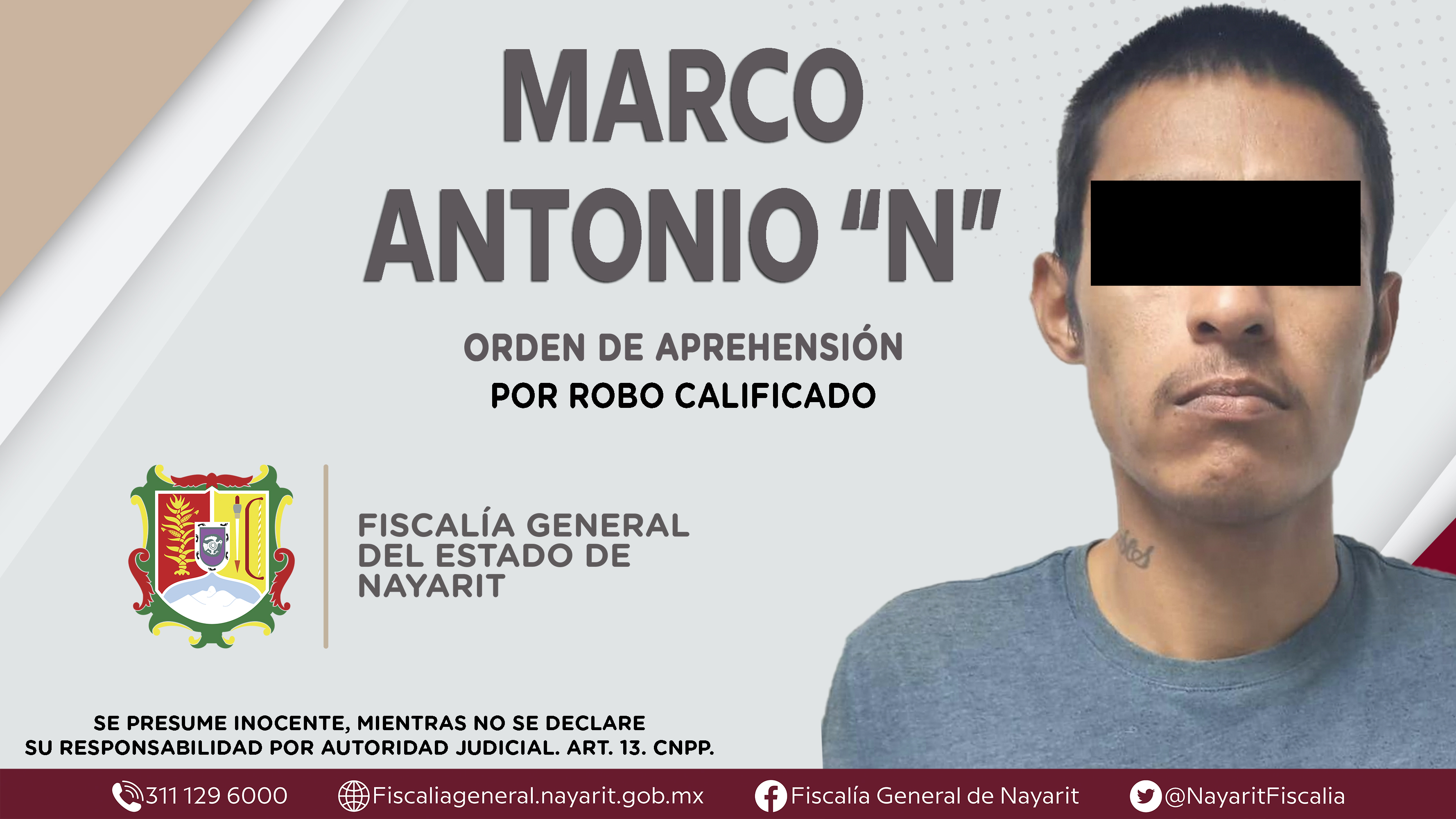 Elementos de la Agencia de Investigación Criminal de Nayarit ejecutaron una orden de aprehensión en la capital nayarita contra Raúl Eduardo “N”, por su presunta participación en hechos que según apreciación de la ley encuadran el delito de robo...