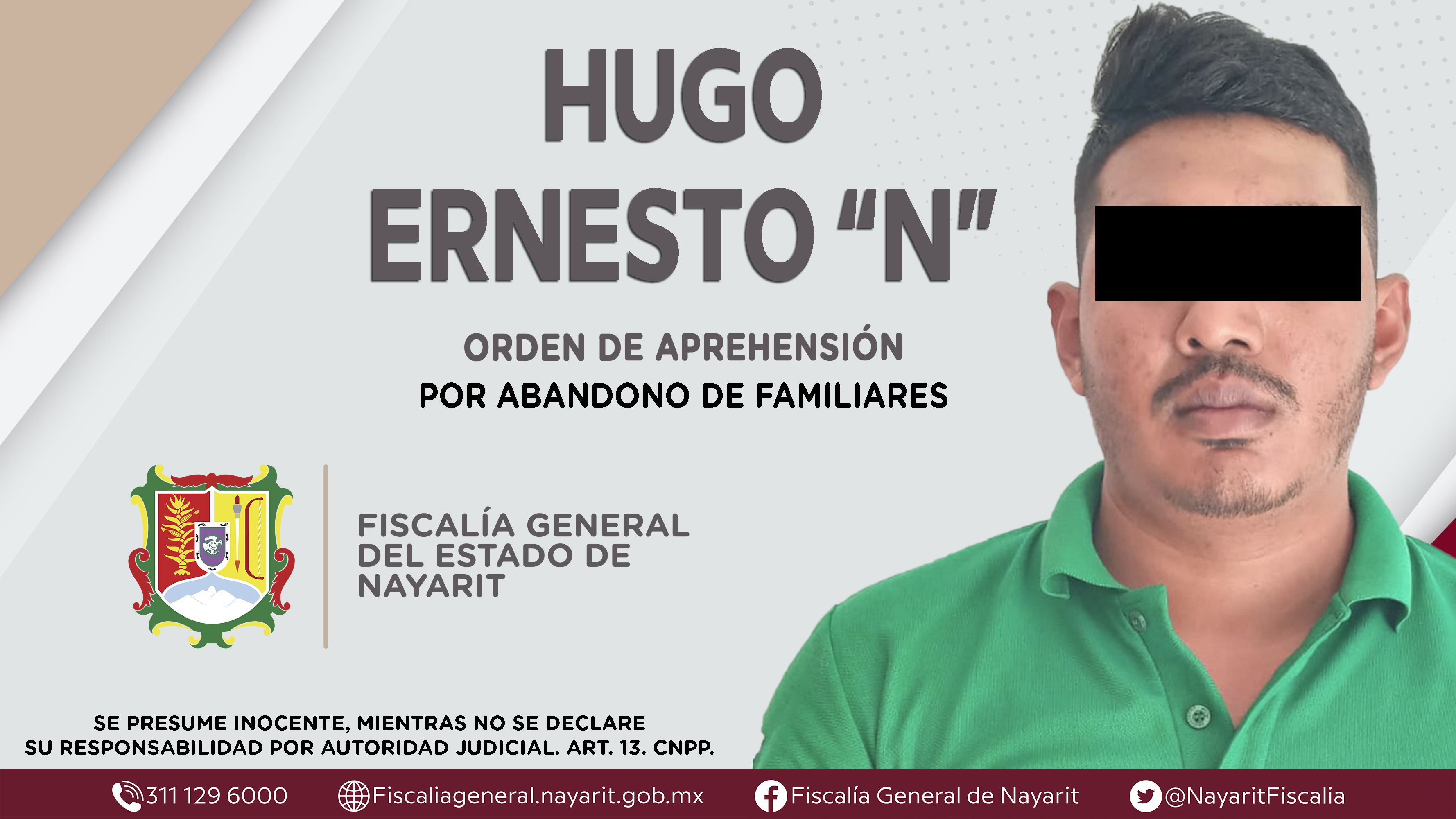 La Fiscalía General del Estado a través de la Agencia de Investigación Criminal cumplimentó una orden de aprehensión en la capital nayarita contra Hugo Ernesto “N”, por su presunta participación en hechos que bajo apreciación de la ley configu...