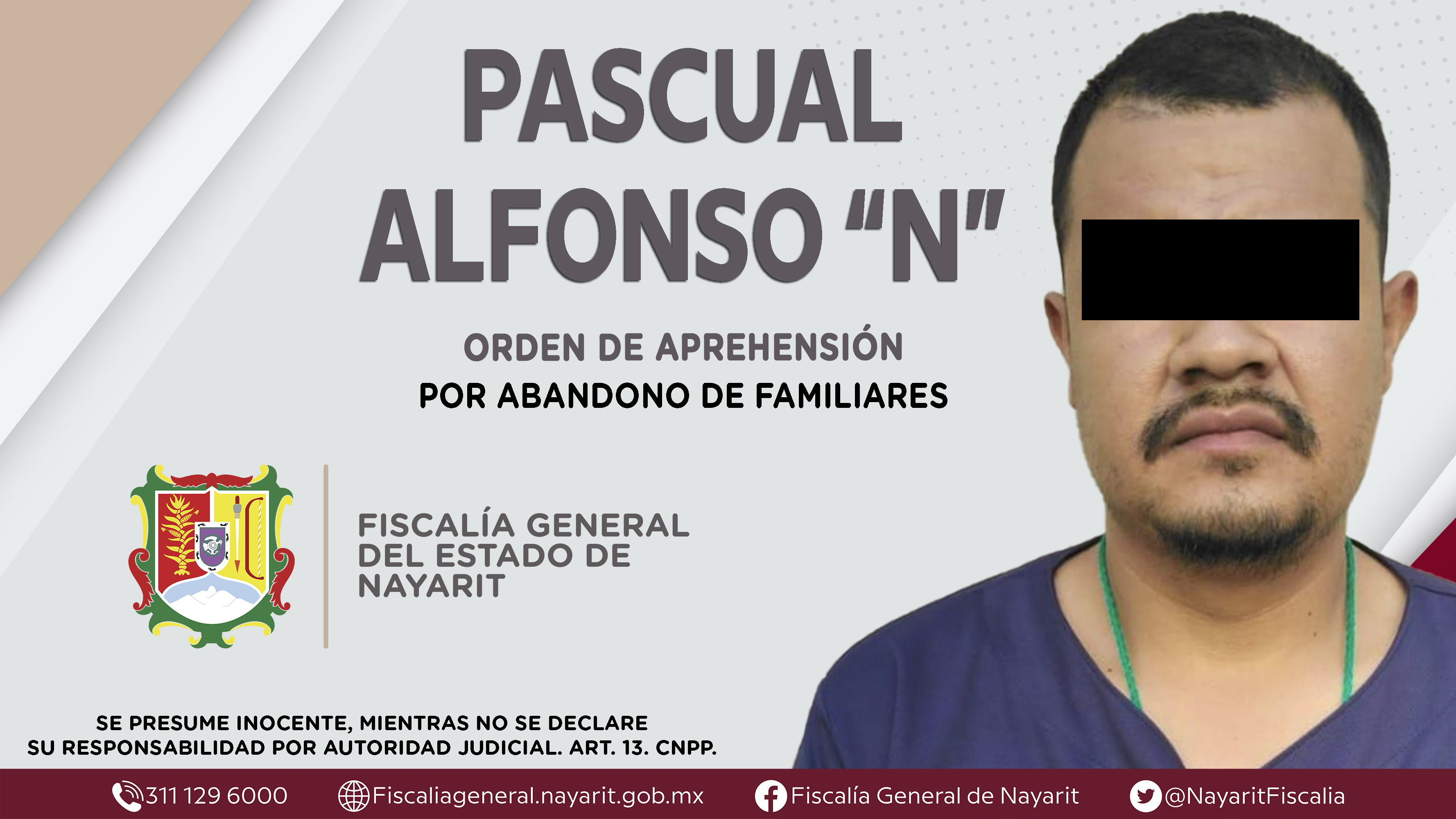 La Fiscalía General del Estado a través de la Agencia de Investigación Criminal cumplimentó una orden de aprehensión en el municipio de Huajicori contra Francisco “N”, por su presunta participación en hechos que bajo apreciación de la ley conf...