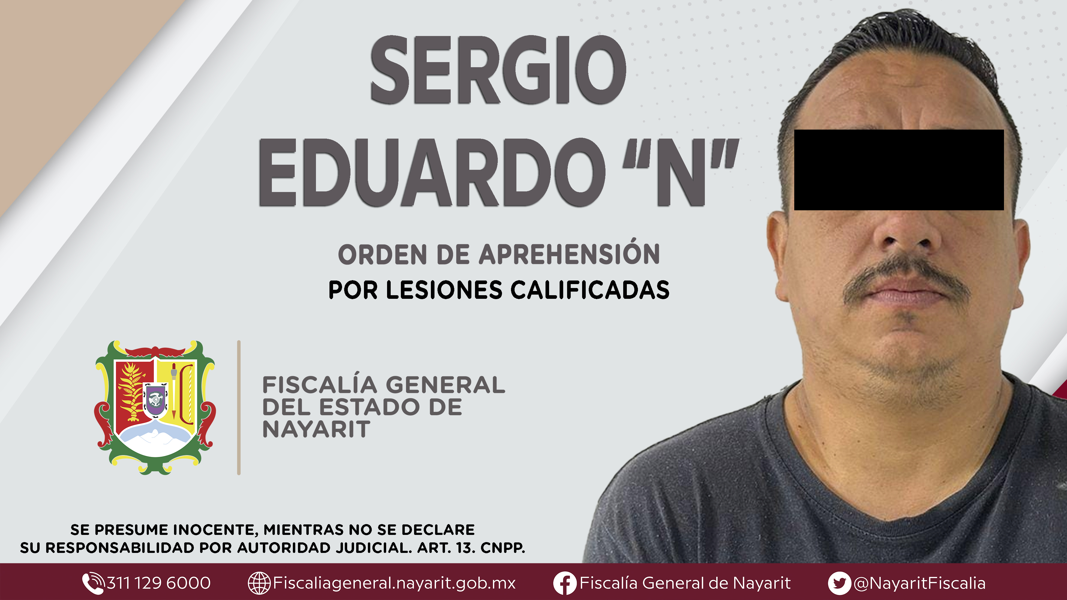Elementos de la Agencia de Investigación Criminal de Nayarit ejecutaron una orden de aprehensión en la carretera Tepic Miramar contra Sergio Eduardo “N”, por su presuntiva participación en hechos que según apreciación de la ley encuadran el deli...