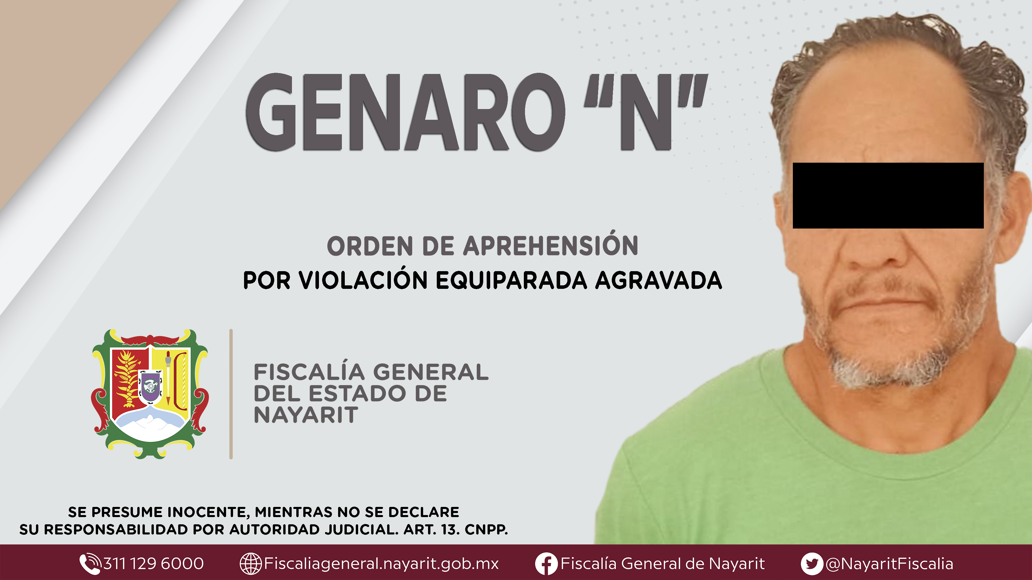 Elementos de la Agencia de Investigación Criminal de Nayarit ejecutaron una orden de aprehensión en el municipio de Tecuala contra Genaro “N”, por su presunta participación en hechos que según apreciación de la ley encuadran el delito de violaci...