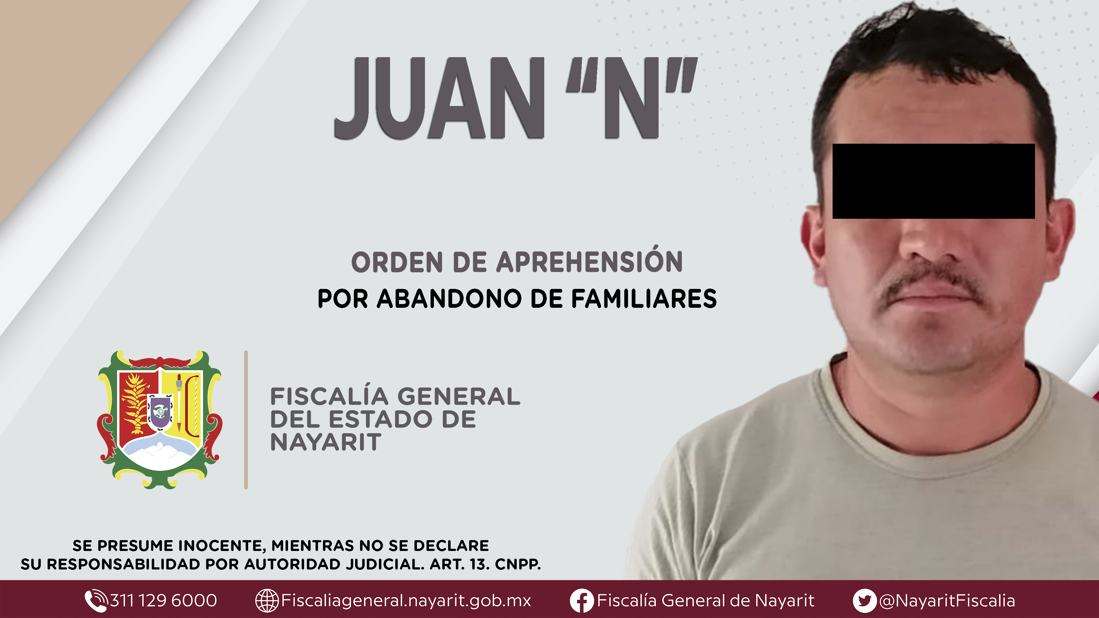 Elementos de la Agencia de Investigación Criminal de Nayarit ejecutaron una orden de aprehensión en el municipio de Huajicori contra Juan “N”, por su presuntiva participación en hechos que según apreciación de la ley encuadran el delito de aband...