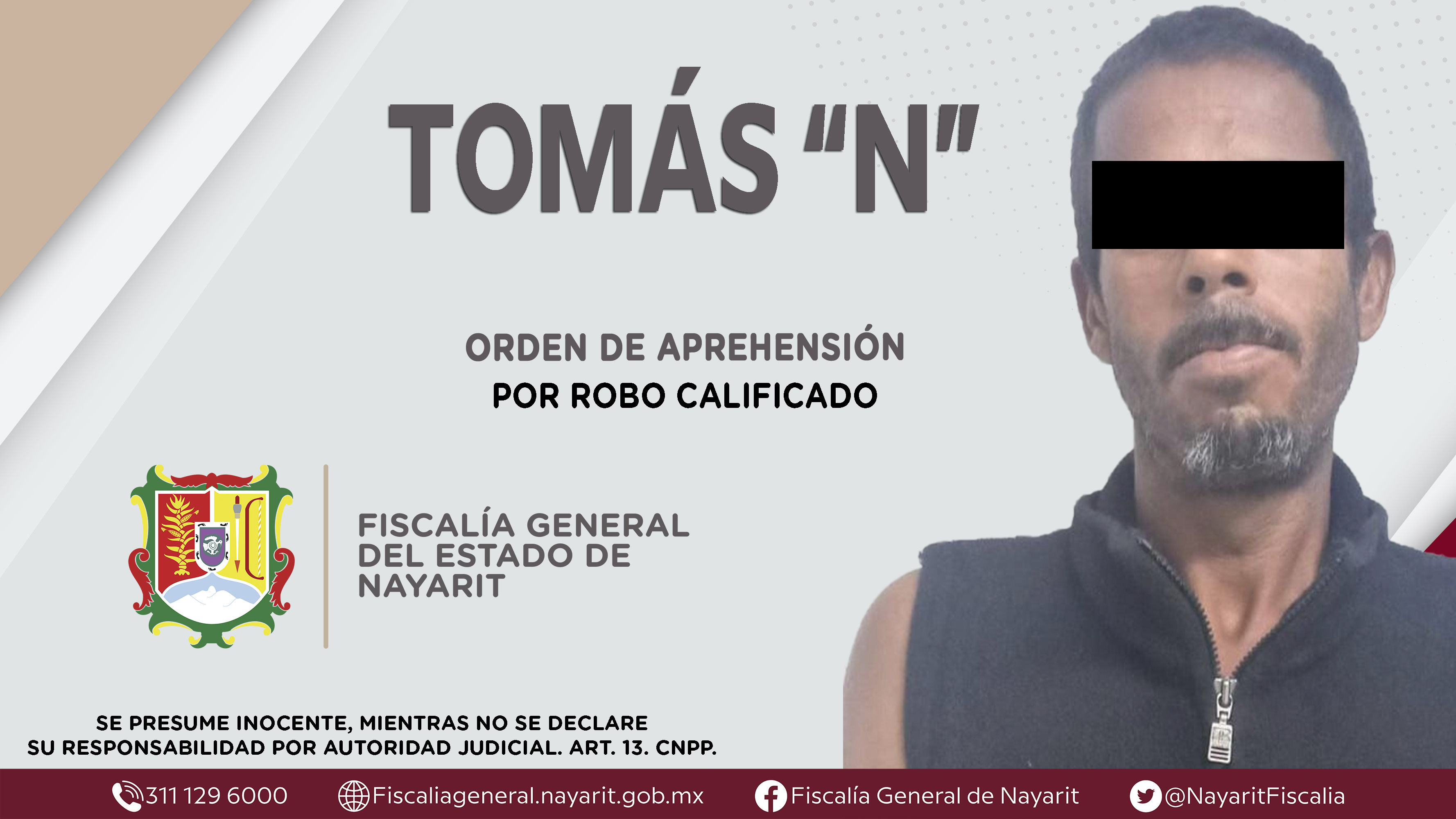 La Fiscalía General de Nayarit a través de la Agencia de Investigación Criminal dio cumplimiento a una orden de aprehensión en la localidad Mezcales, municipio de Bahía de Banderas contra Manuel “N”, por su presunta participación en hechos que ...