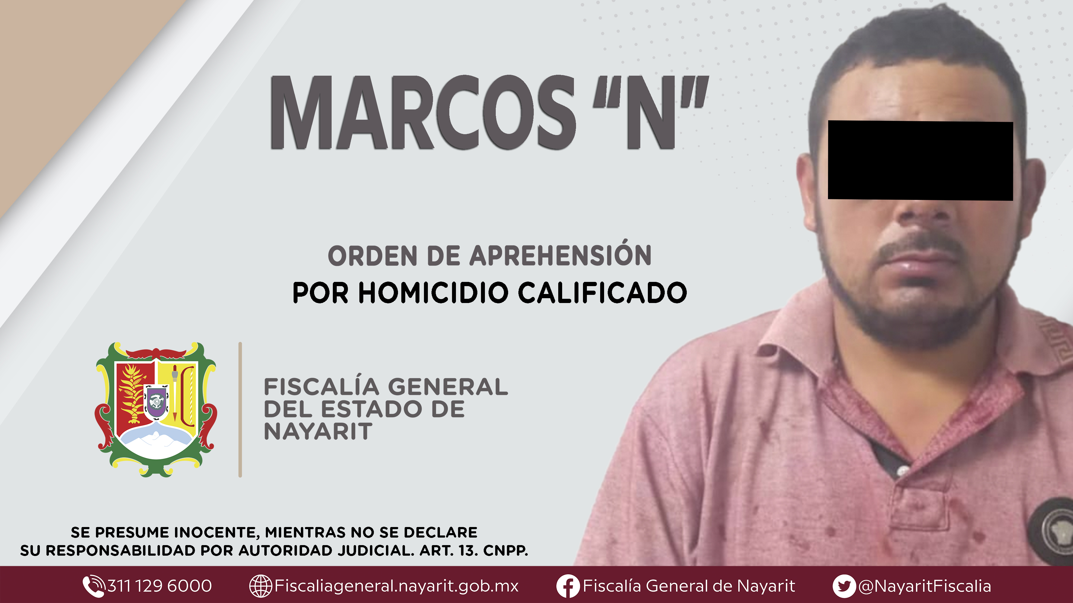Con la colaboración de la Fiscalía General del estado de Sinaloa, elementos de la Agencia de Investigación Criminal de Nayarit ejecutaron una orden de aprehensión en la ciudad de Mazatlán, Sinaloa contra Marcos “N”, por su presunta participació...