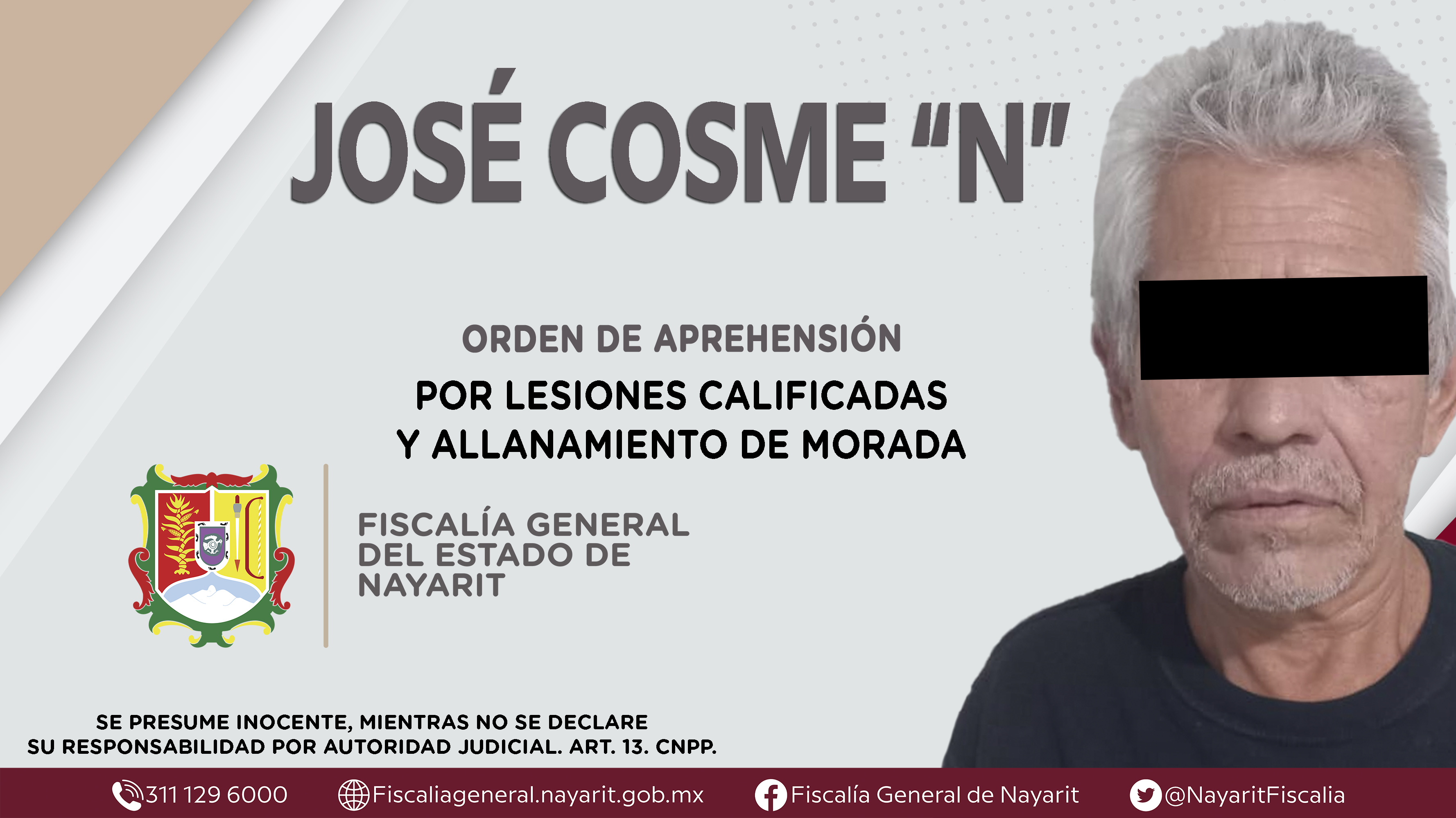 Elementos de la Agencia de Investigación Criminal de Nayarit ejecutaron una orden de aprehensión en la localidad Valle de Banderas, municipio de Bahía de Banderas contra Ramón “N”, por su presunta participación en hechos que según apreciación ...