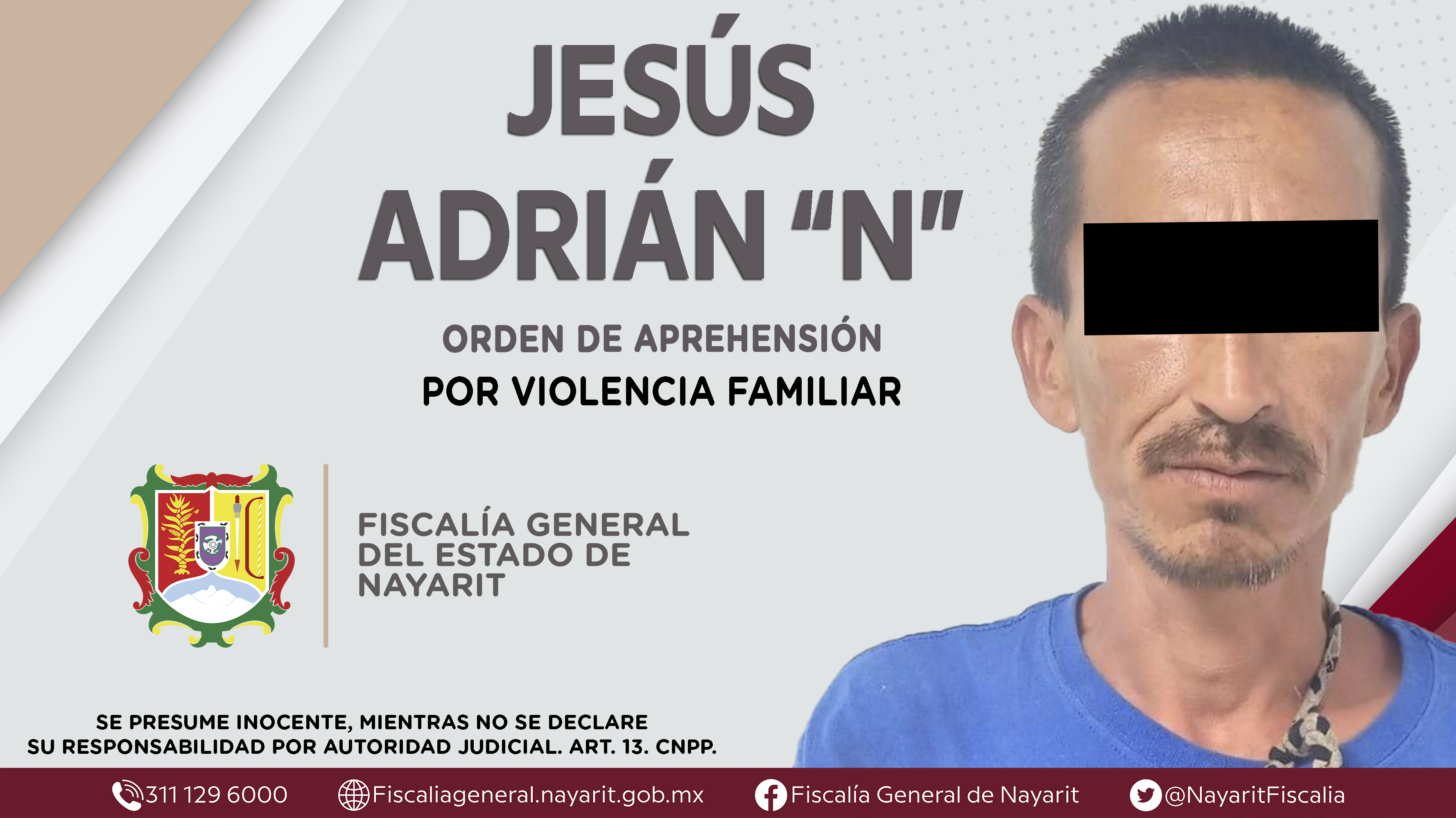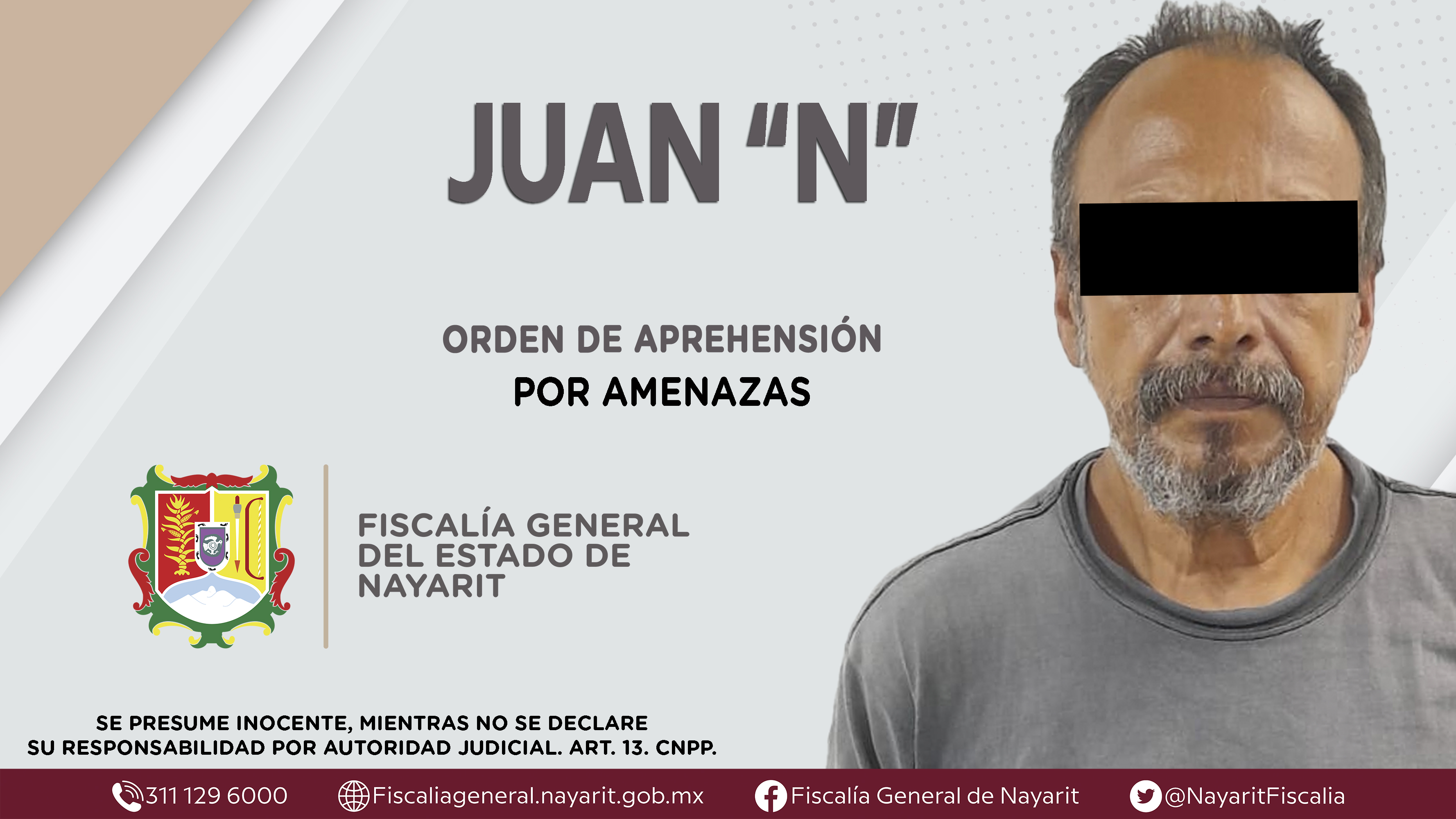 La Fiscalía General del Estado a través de la Agencia de Investigación Criminal dio cumplimiento a una orden de aprehensión en la capital nayarita contra Juan “N”, por su presunta participación en hechos que según apreciación de la ley encuadr...