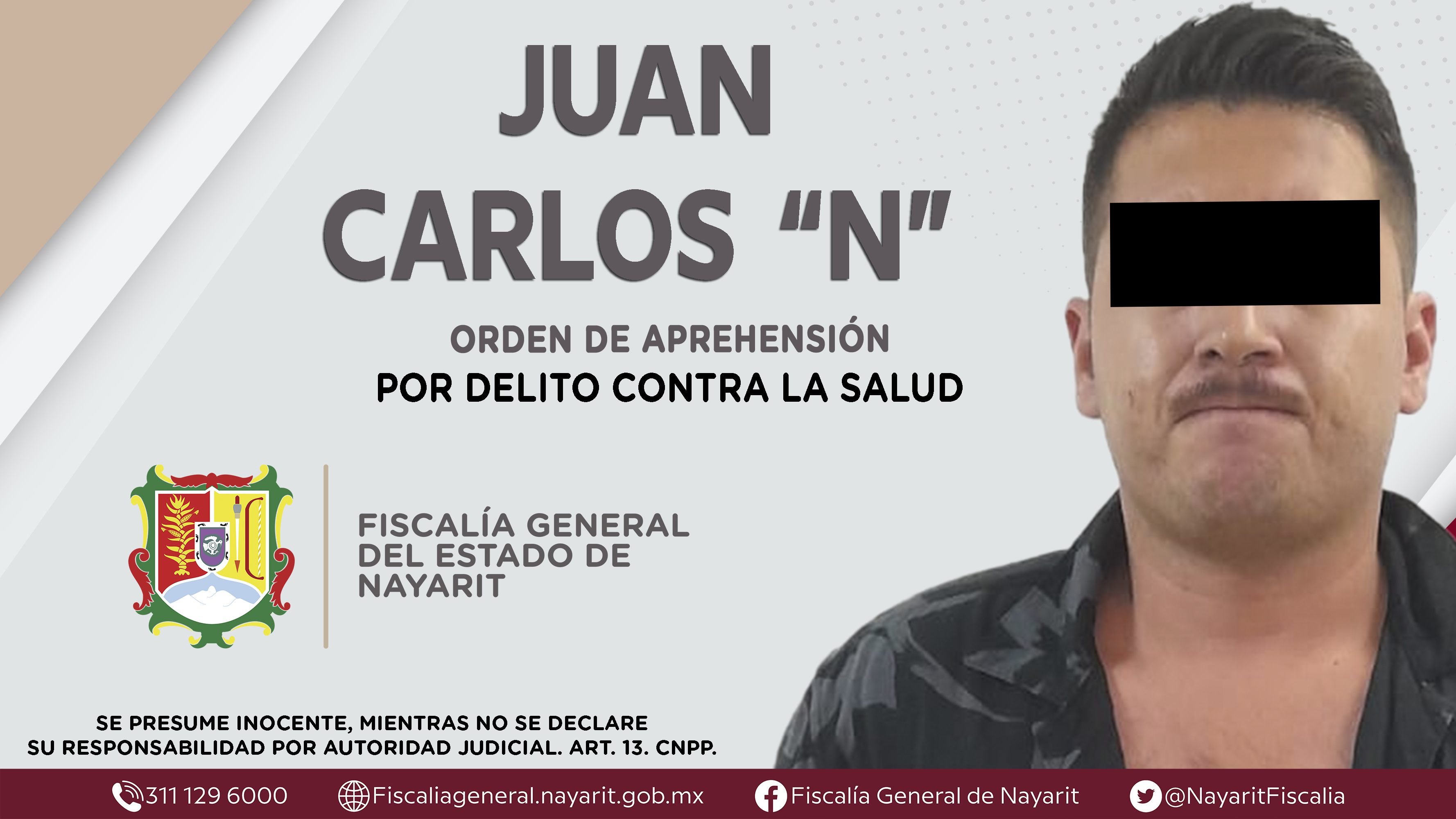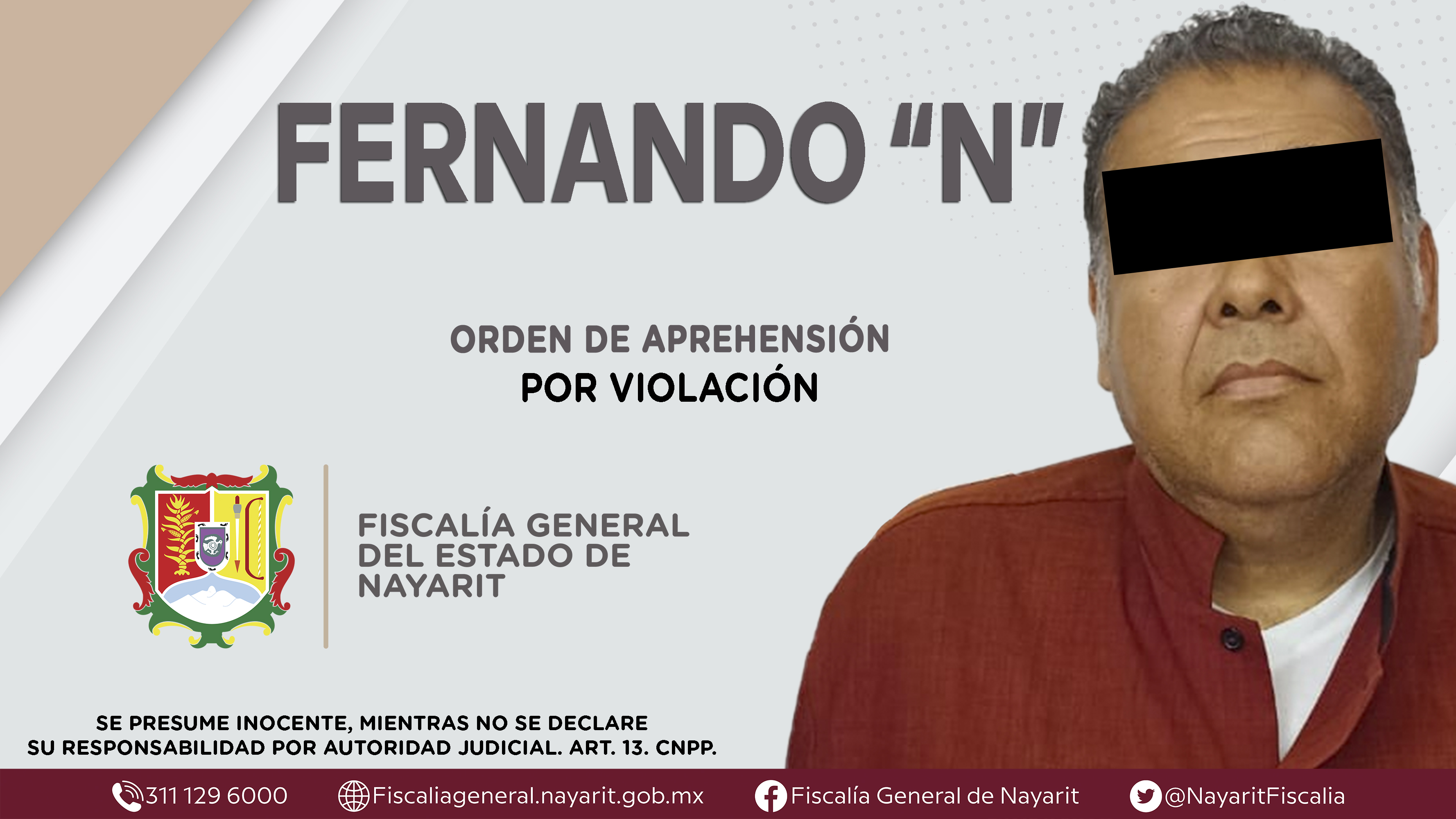 La Fiscalía General del Estado a través de la Agencia de Investigación Criminal dio cumplimiento a una orden de aprehensión en el municipio de Bahía de Banderas contra Fernando “N”, por su presunta participación en hechos que según apreciació...