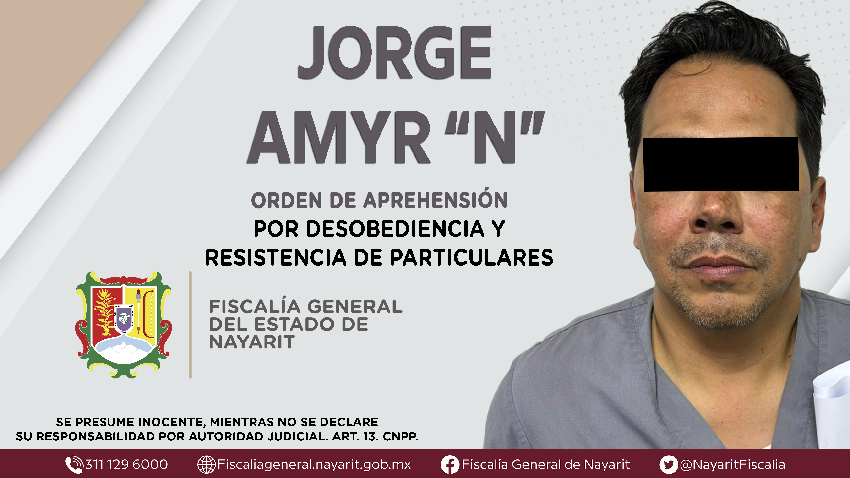 La Fiscalía General del Estado a través de la Agencia de Investigación Criminal dio cumplimiento a una orden de aprehensión en la capital nayarita contra Jorge Amyr “N”, por su presunta participación en hechos que según apreciación de la ley e...