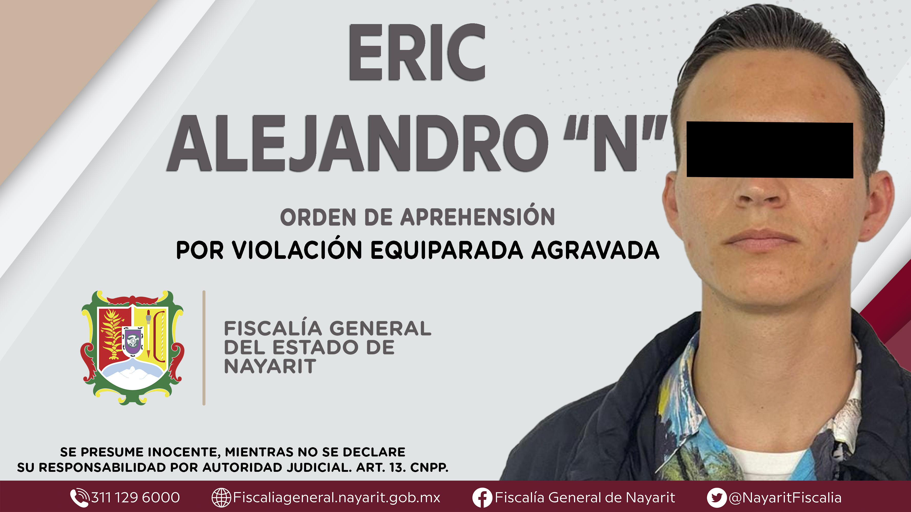 La Fiscalía General de Nayarit a través de la Agencia de Investigación Criminal dio cumplimiento a una orden de aprehensión en la capital nayarita contra Eric Alejandro “N”, por su presunta participación en hechos que según apreciación de la l...