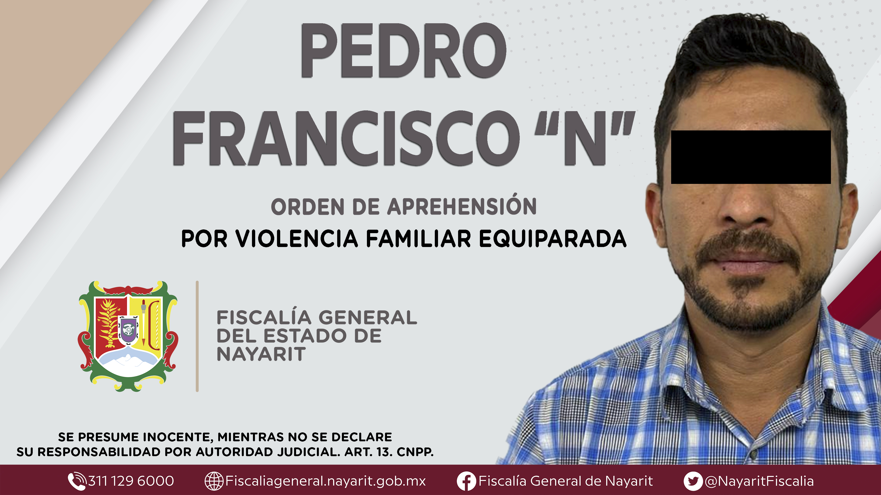 La Fiscalía General de Nayarit a través de la Agencia de Investigación Criminal dio cumplimiento a una orden de aprehensión en la capital nayarita contra Pedro Francisco “N”, por su presunta participación en hechos que según la ley configuran e...