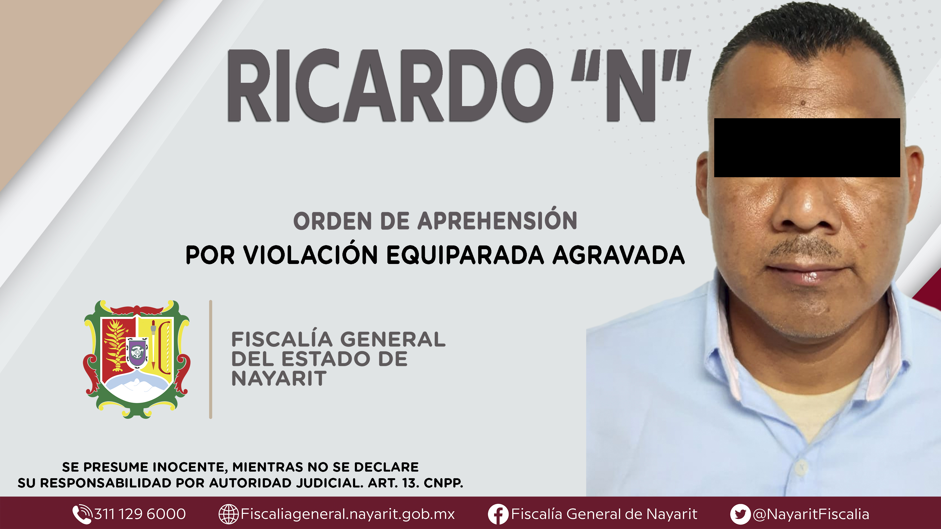La Fiscalía General de Nayarit a través de la Agencia de Investigación Criminal dio cumplimiento a una orden de aprehensión en la ciudad de Tepic contra Ricardo “N”, por su presunta participación en hechos que según apreciación de la ley encua...