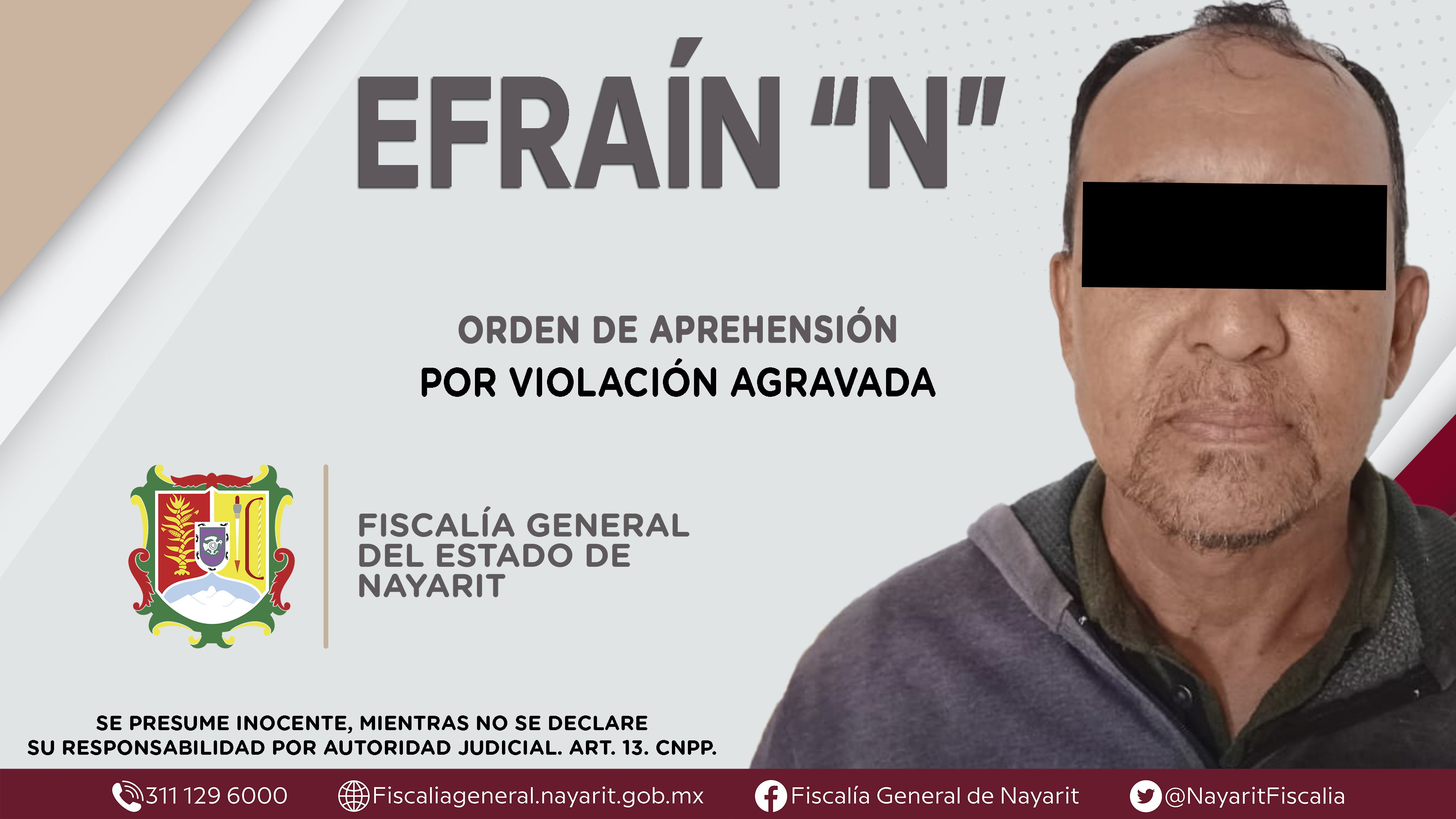 Elementos de la Agencia de Investigación Criminal dieron cumplimiento a una orden de aprehensión en el municipio de Compostela contra Efraín “N”, por su presunta participación en hechos que bajo la apreciación de la ley configuran el delito de v...