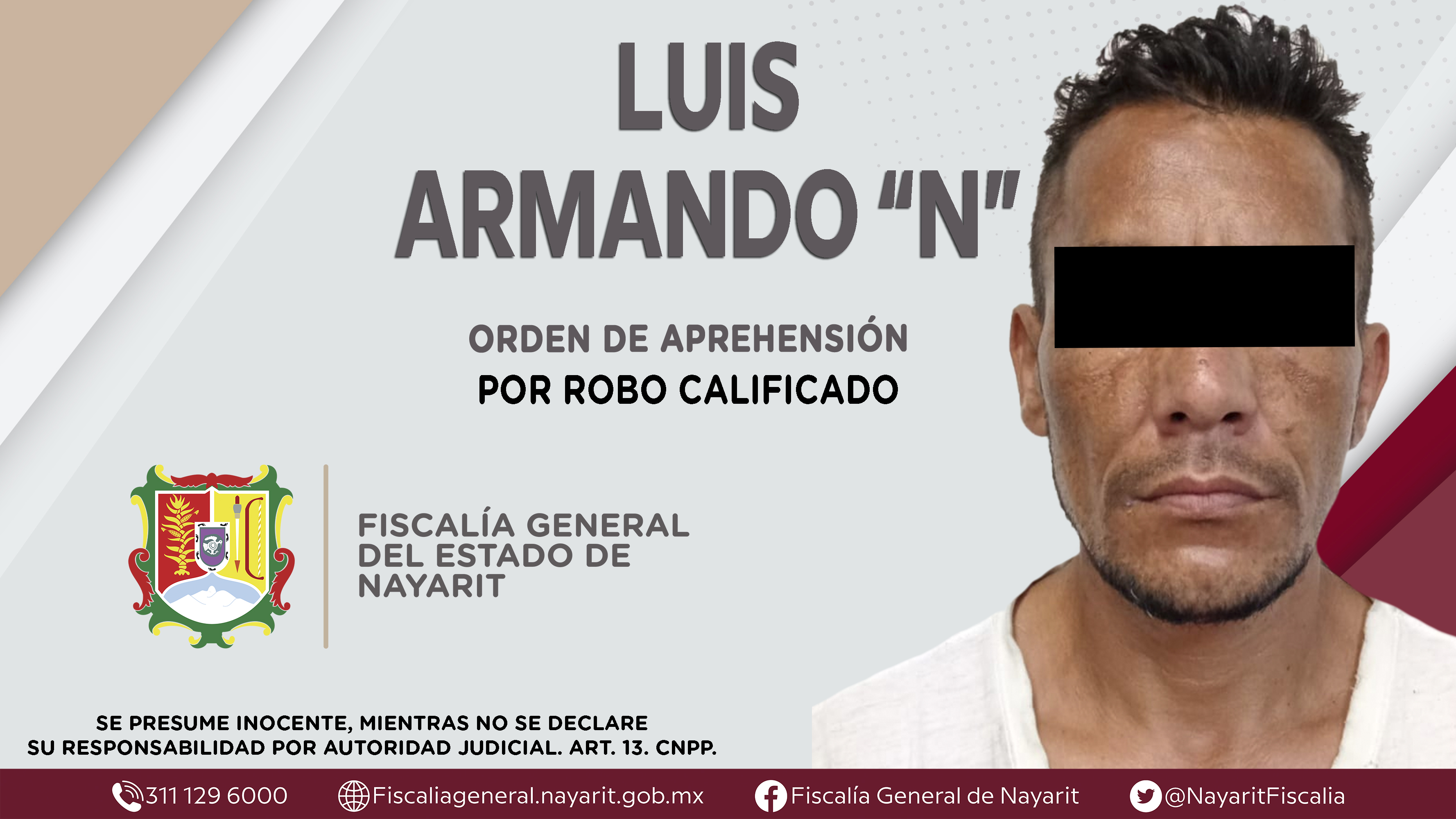 La Fiscalía General de Nayarit a través de la Agencia de Investigación Criminal ejecutó una orden de aprehensión en la capital nayarita contra Luis Alberto “N”, originario y vecino de la ciudad de Tepic, por su presunta participación en hechos ...