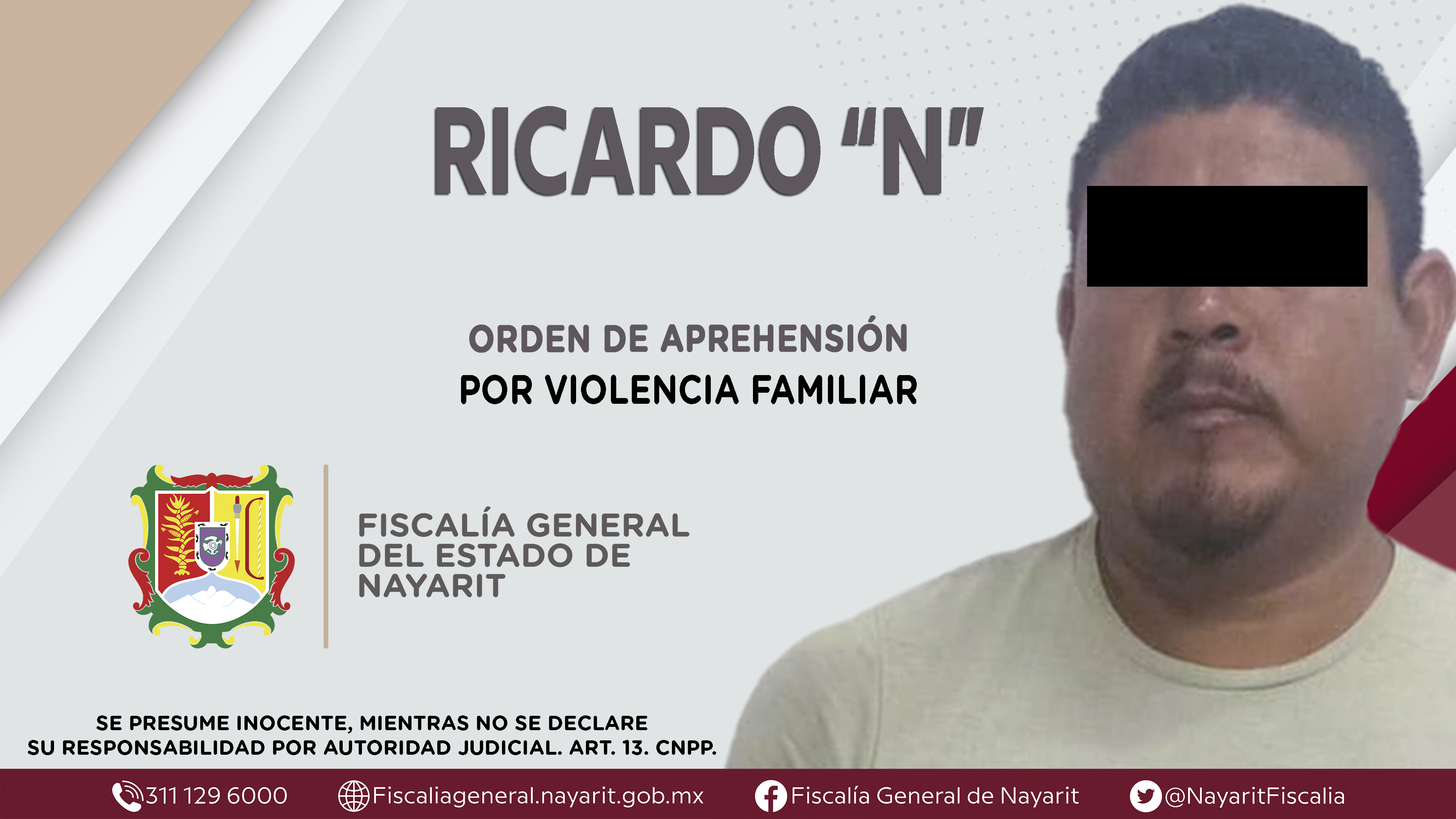 Boletín 1575/2022 | CAPTURADO EN SANTIAGO IXCUINTLA POR ABANDONO DE FAMILIARES