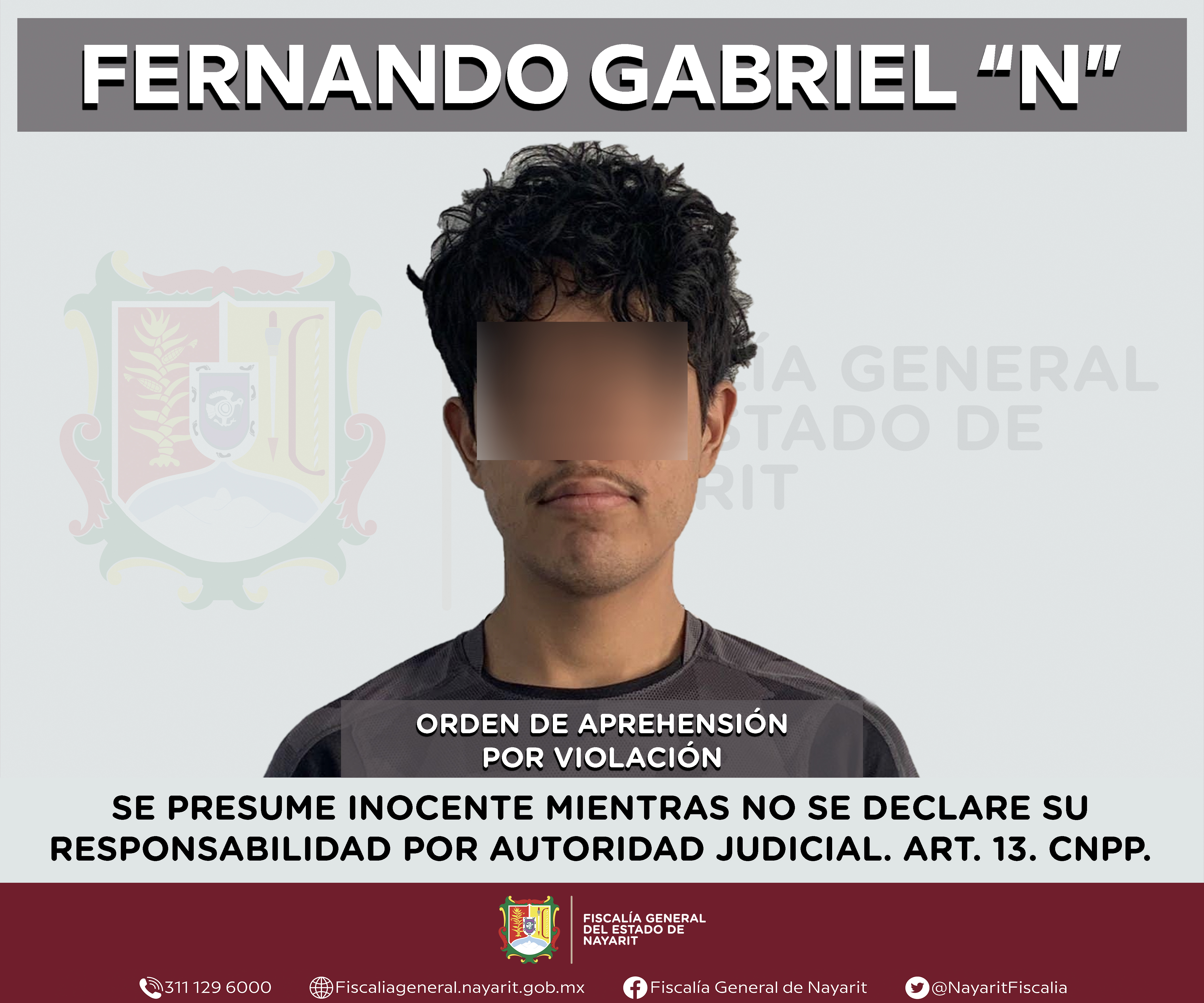 Elementos de la Agencia de Investigación Criminal de Nayarit ejecutaron una orden de aprehensión en la capital nayarita contra Fernando Gabriel “N”, por su presunta participación en hechos que según apreciación de la ley encuadran el delito de v...