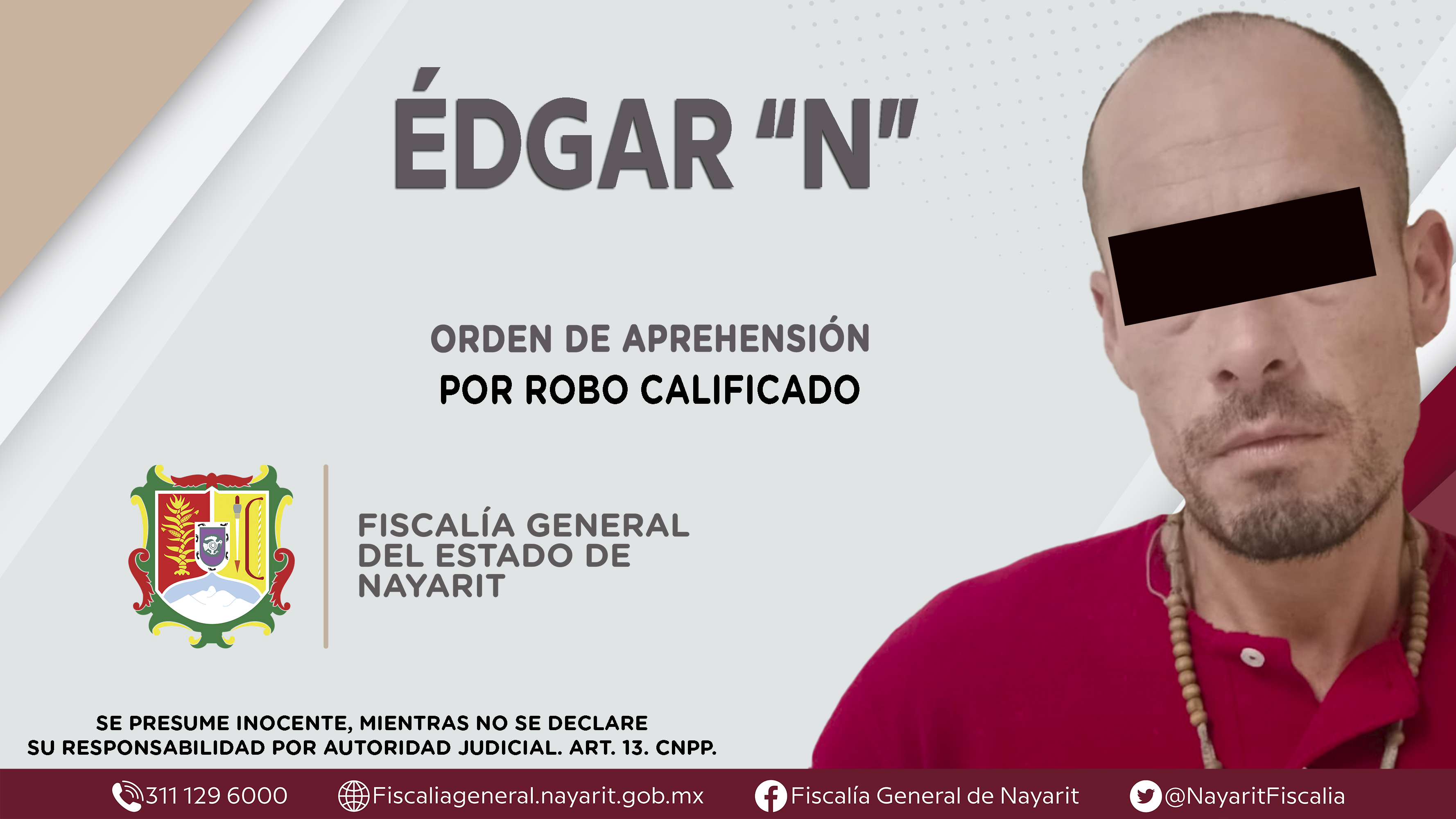 La Fiscalía General de Nayarit a través de la Agencia de Investigación Criminal ejecutó una orden de aprehensión en el municipio de Compostela contra Édgar “N”, -quien es originario de Mexicali, Baja California y vecino del municipio de Compost...