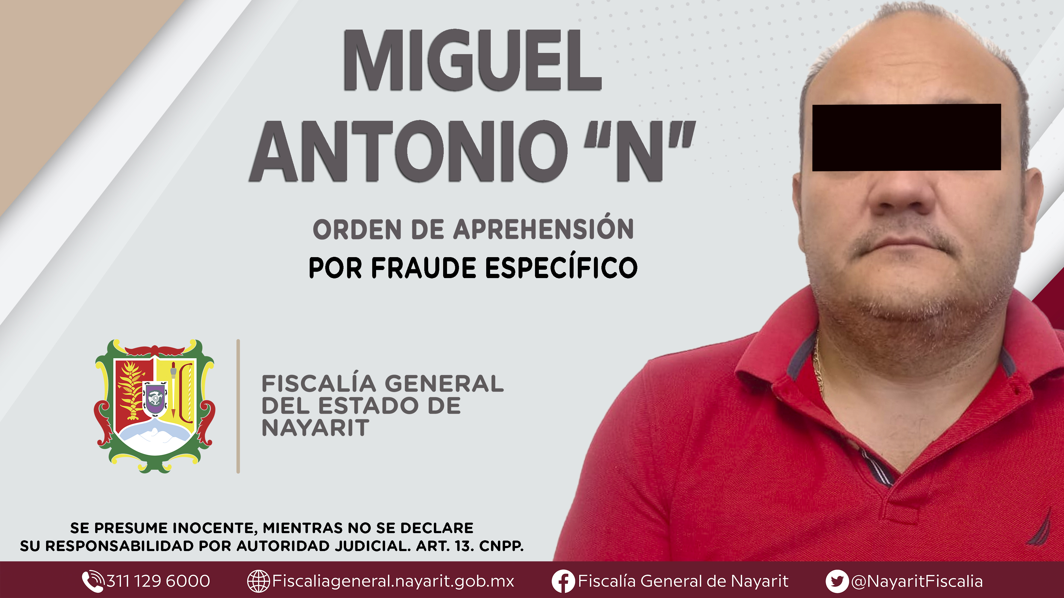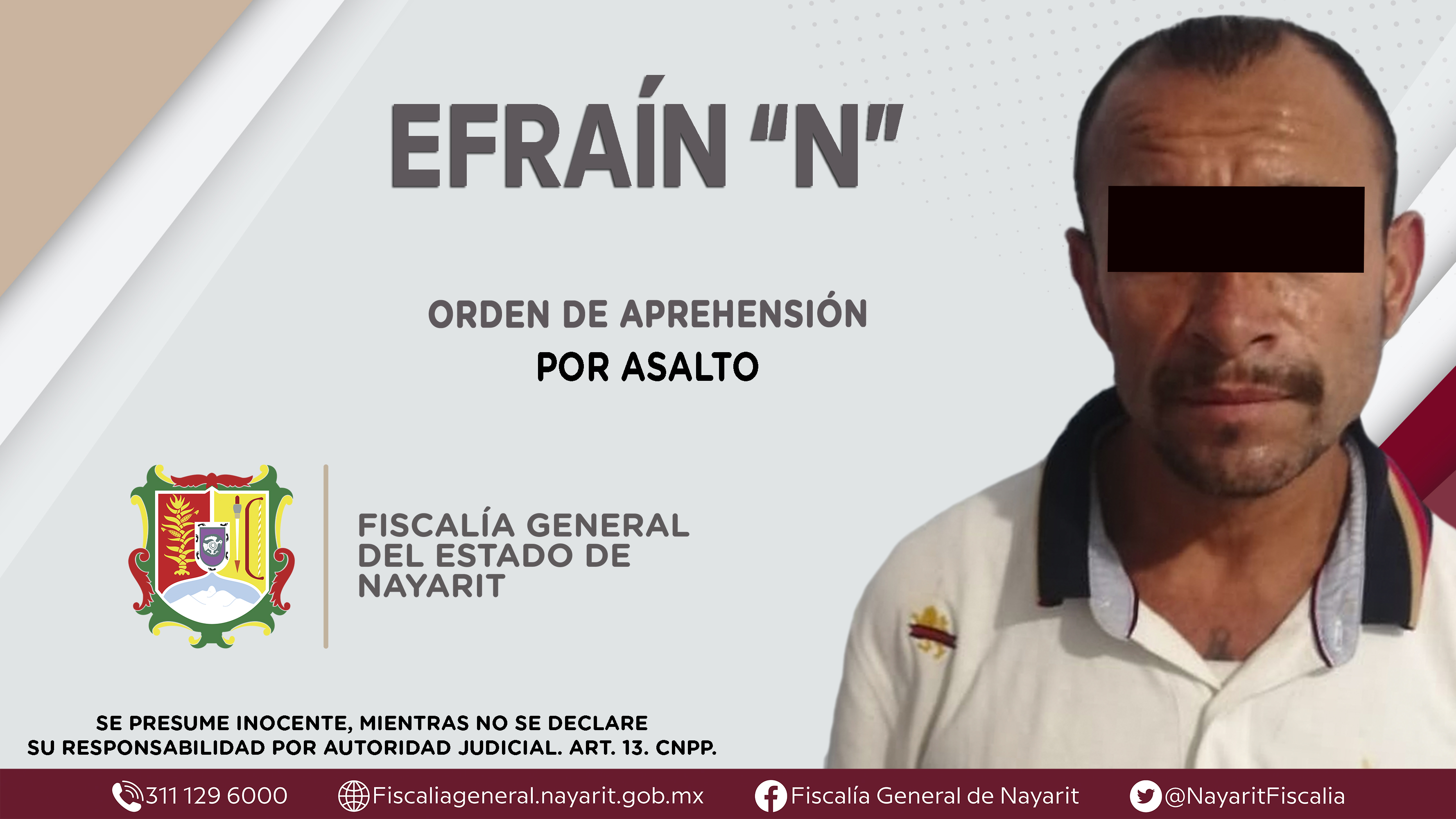 En el municipio de Xalisco, la Fiscalía General de Nayarit a través de la Agencia de Investigación Criminal ejecutó una orden de reaprehensión contra Efraín “N”, por su presuntiva responsabilidad penal en hechos que la ley califica como delito ...