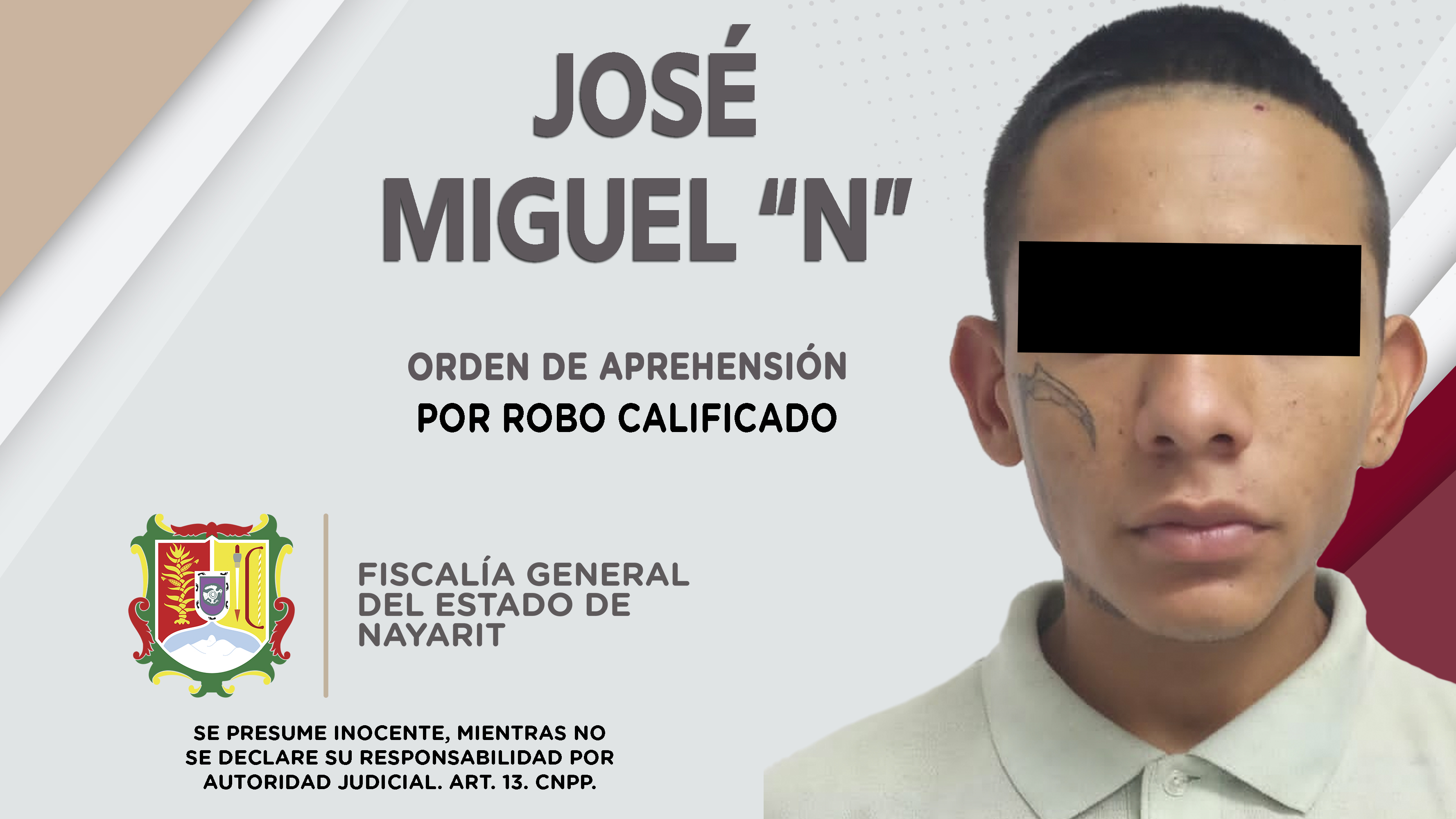 La Fiscalía General de Nayarit a través de la Agencia de Investigación Criminal ejecutó una orden de aprehensión en la localidad Cruz de Huanacaxtle, municipio de Bahía de Banderas contra Luis Miguel “N”, por su presunta participación en hecho...