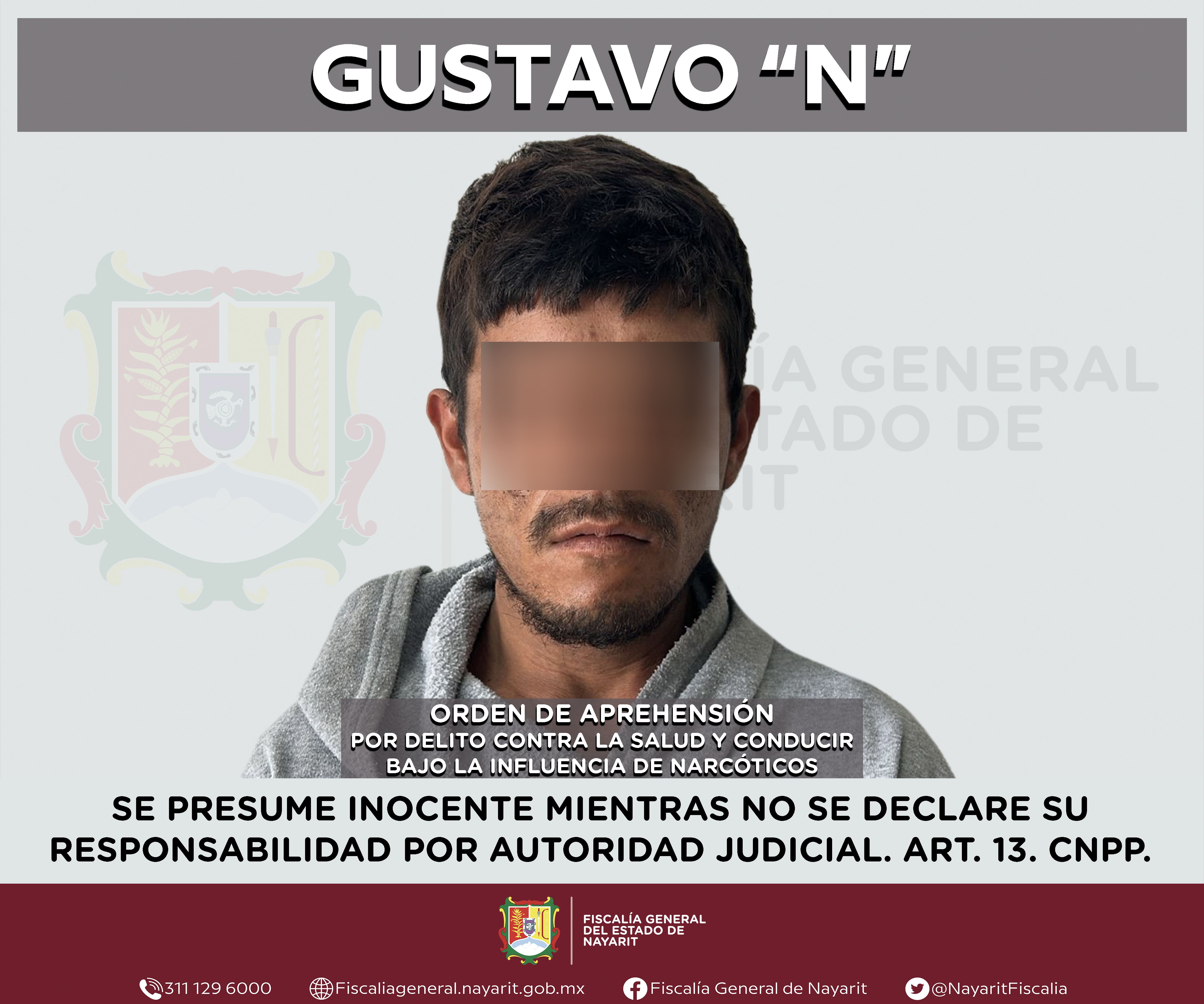 Elementos de la Agencia de Investigación Criminal de Nayarit ejecutaron una orden de aprehensión en la capital nayarita contra José César “N”, por su probable participación en hechos que para la ley configuran el delito contra la salud en su mod...
