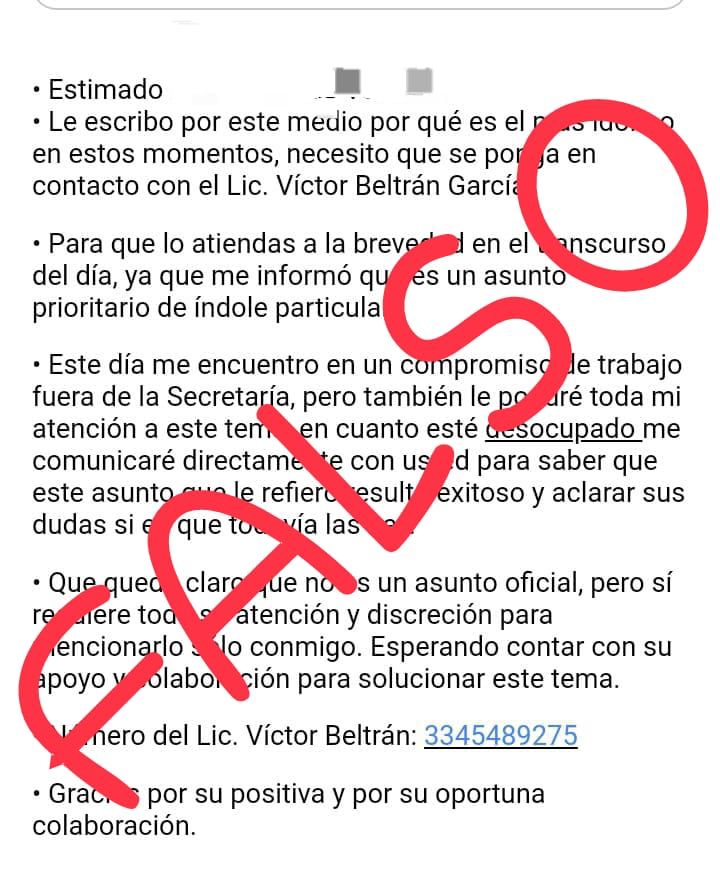 Boletín 0646/2023 | ALERTA FGE SOBRE USURPACIÓN DE IDENTIDAD DE FUNCIONARIO ESTATAL