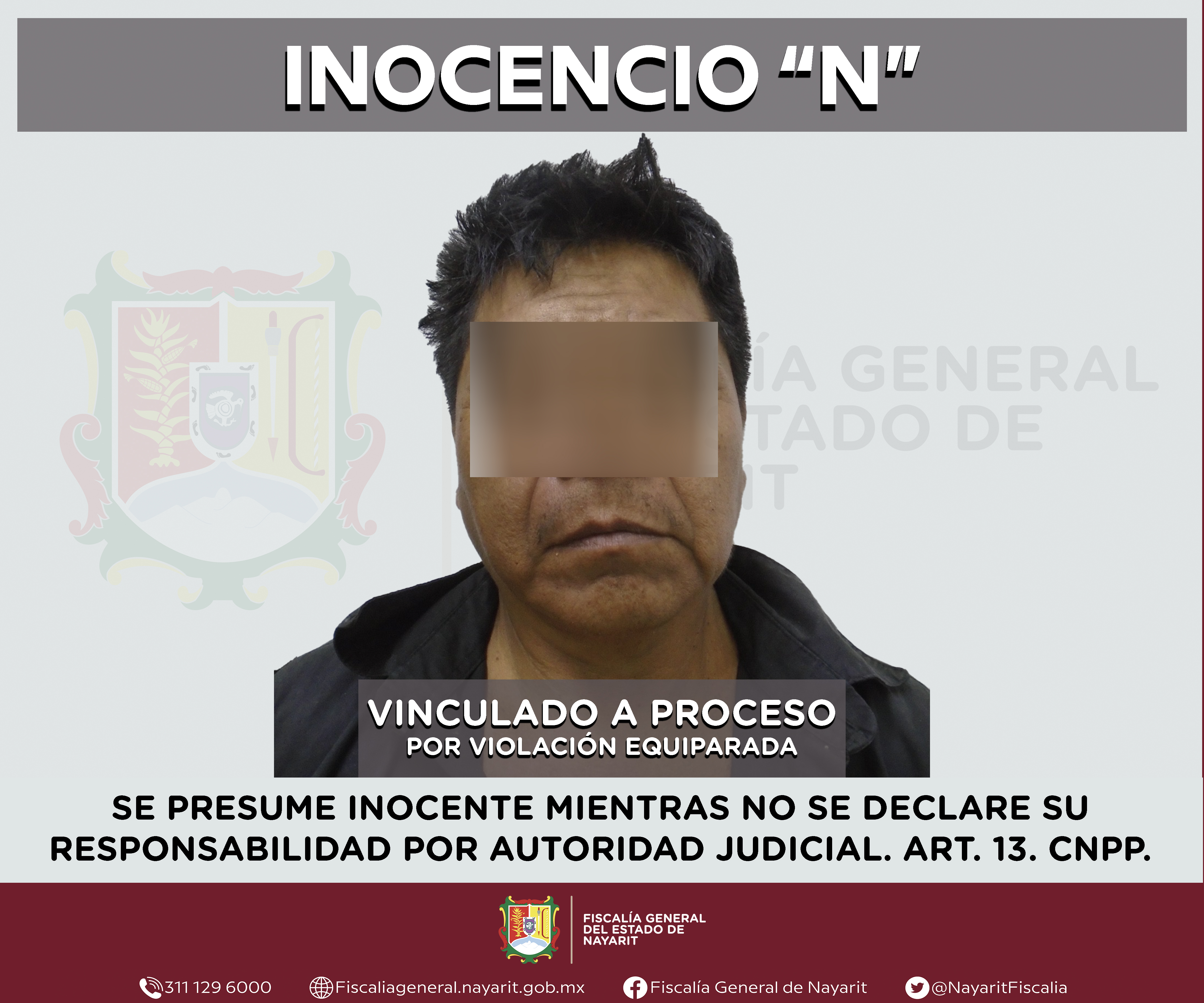 Tepic, Nayarit; martes 3 de septiembre de 2024.- Un Juez de Control dictó auto de vinculación a proceso contra Luis Alfredo “N”, como presunto responsable de hechos que bajo la apreciación de la ley configuran el delito de violación equiparada, c...
