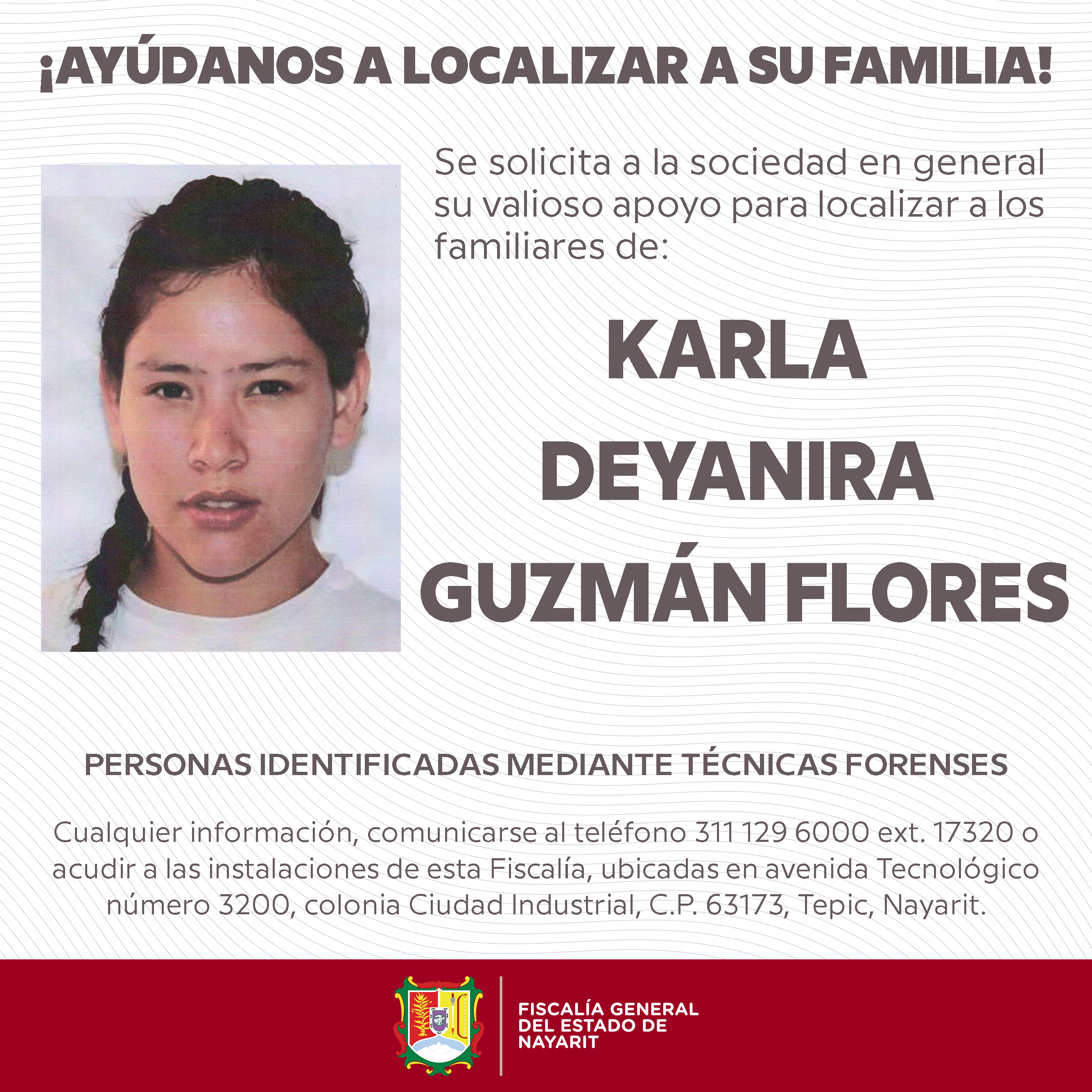 La Fiscalía General del Estado de Nayarit solicita el apoyo de la ciudadanía para lograr su identificación. Sus cuerpos se encuentran resguardados en el Servicio Médico Forense, ubicado en Av. Tecnológico No. 3200 Oriente, colonia Ciudad Industrial, en Tepic.