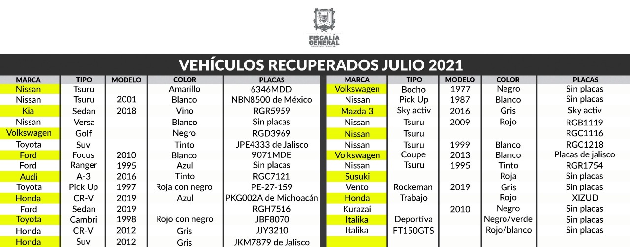 • En coordinación con corporaciones policiacas de los tres órdenes de gobierno\r\n\r\nTepic, Nayarit; 04 de agosto de 2021.- La Unidad de Robo de Vehículos dependiente de Fiscalía General del Estado, en coordinación con autoridades policiacas de l...