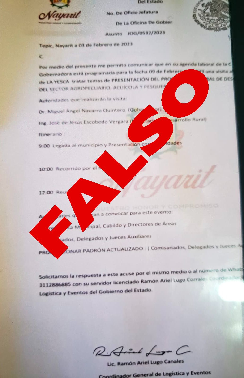 • Diversos alcaldes de la entidad han sido requeridos de información para supuestamente coordinar una gira del gobernador, siendo esto falso\r\n\r\nTepic, Nayarit; viernes 3 de febrero de 2023.- Derivado de una denuncia presentada este día ante el Ag...