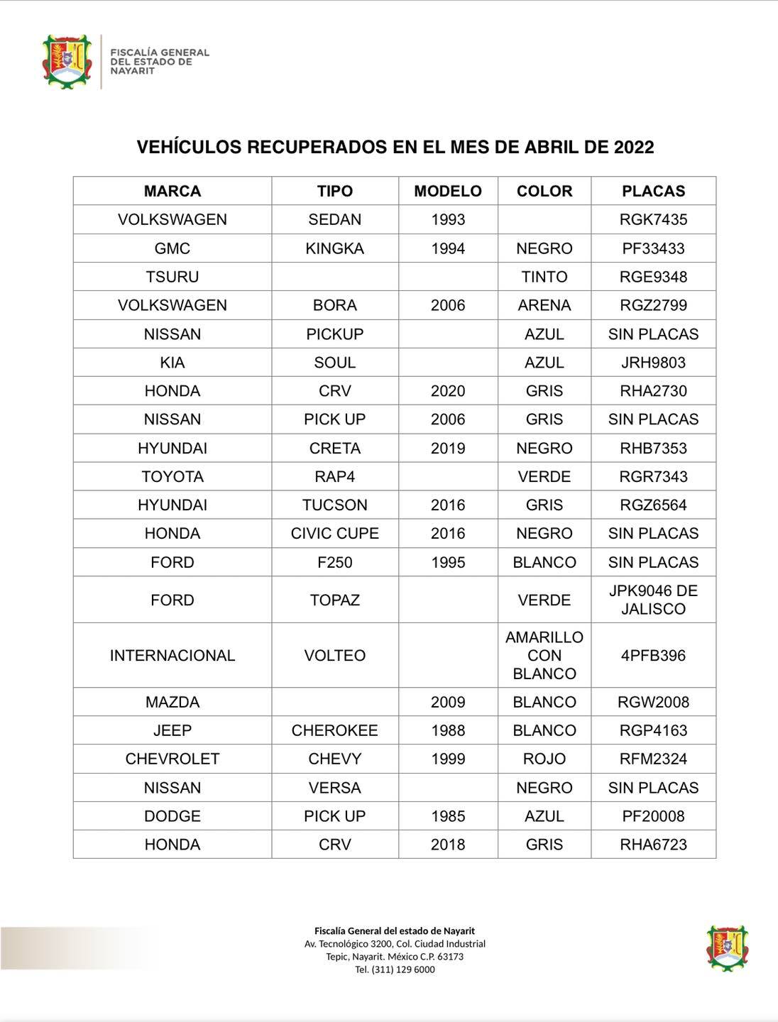 • En coordinación con corporaciones policiacas de los tres órdenes de gobierno\r\n\r\nTepic, Nayarit; 23 de mayo de 2022.- La Unidad de Robo de Vehículos dependiente de Fiscalía General del Estado, en coordinación con autoridades policiacas de los...