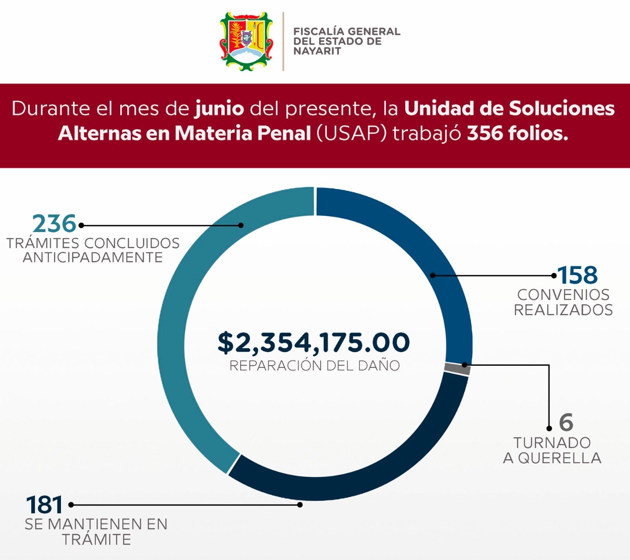* Durante el mes de junio, la Unidad de Soluciones Alternas en Materia Penal realizó un total de 356 trámites y formalizó 158 convenios, para beneficio de los afectados.\r\n\r\nTepic, Nayarit; 11 de julio de 2021.- La Fiscalía General de Nayarit a tr...
