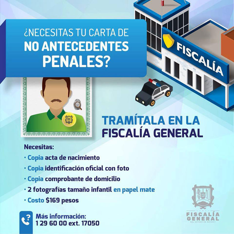 La Dirección General de Control de Procesos de la FGE, expide cartas de no antecedentes penales en 5 municipios del estado.\r\n\r\nTepic, Nayarit; 10 de agosto del 2018.- La Fiscalía General del estado, con la finalidad de brindar apoyo a las familias ...