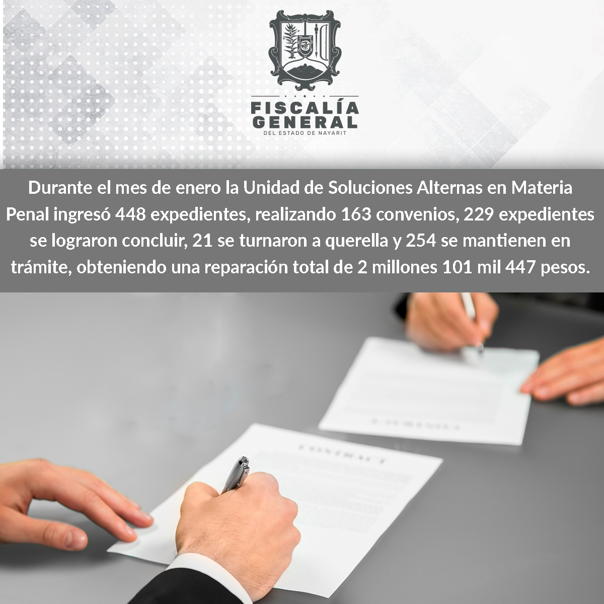 La Unidad de Soluciones Alternas en Materia Penal (USAP) permite a las partes involucradas optar por el método más eficaz para resolver el asunto de que se trate; es el medio para aplicar la mediación y/o conciliación y durante el mes de enero se obt...