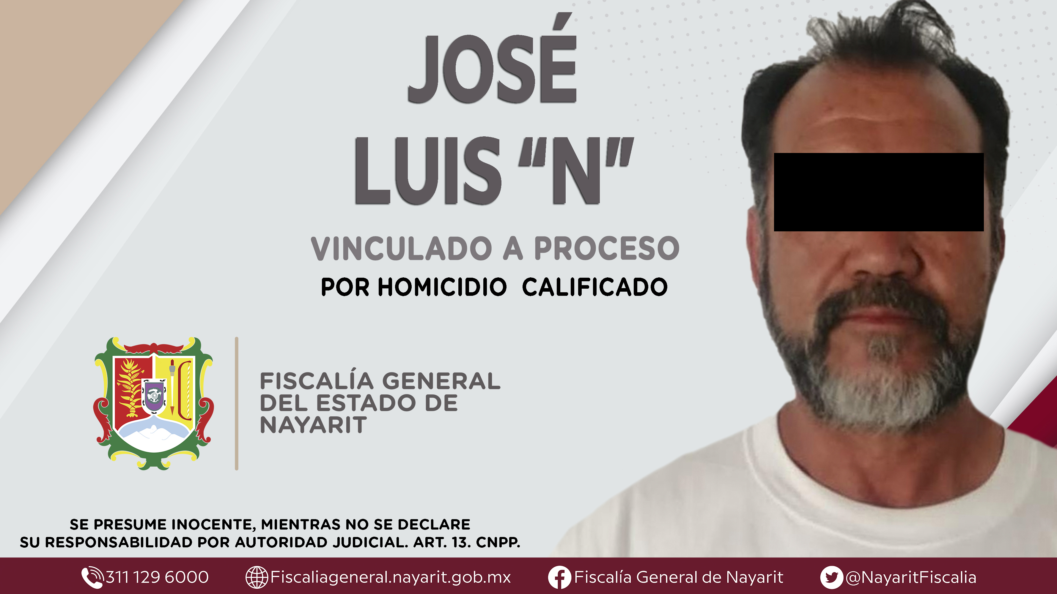 Tepic, Nayarit; lunes 29 de enero de 2024.- La Fiscalía General del estado de Nayarit obtuvo de un Juez de Control un auto de vinculación a proceso contra José Luis \"N\""