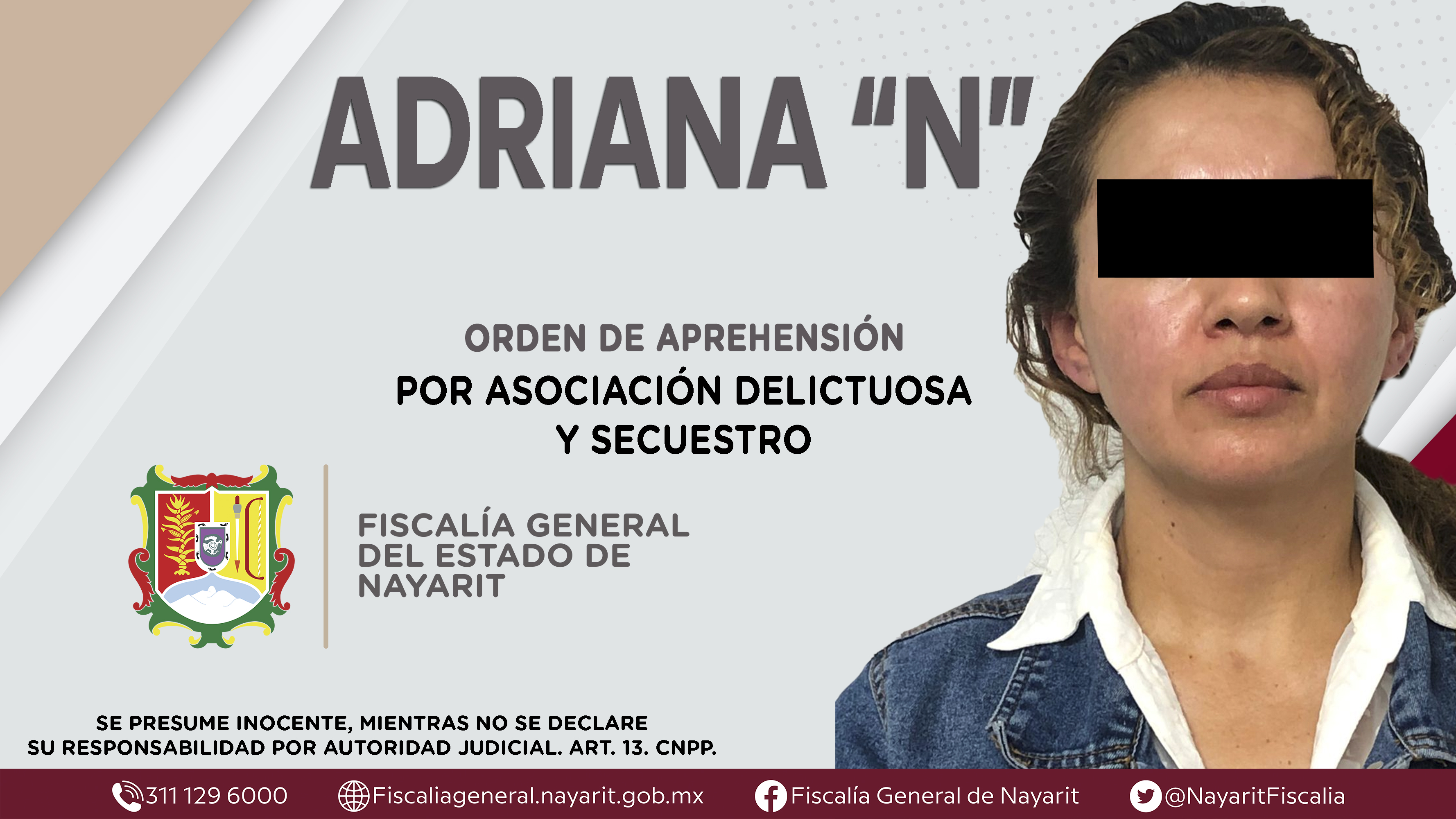 Elementos de la Agencia de Investigación Criminal de Fiscalía General de Nayarit ejecutaron una orden de aprehensión en la ciudad de Tepic contra Adriana \"N\""