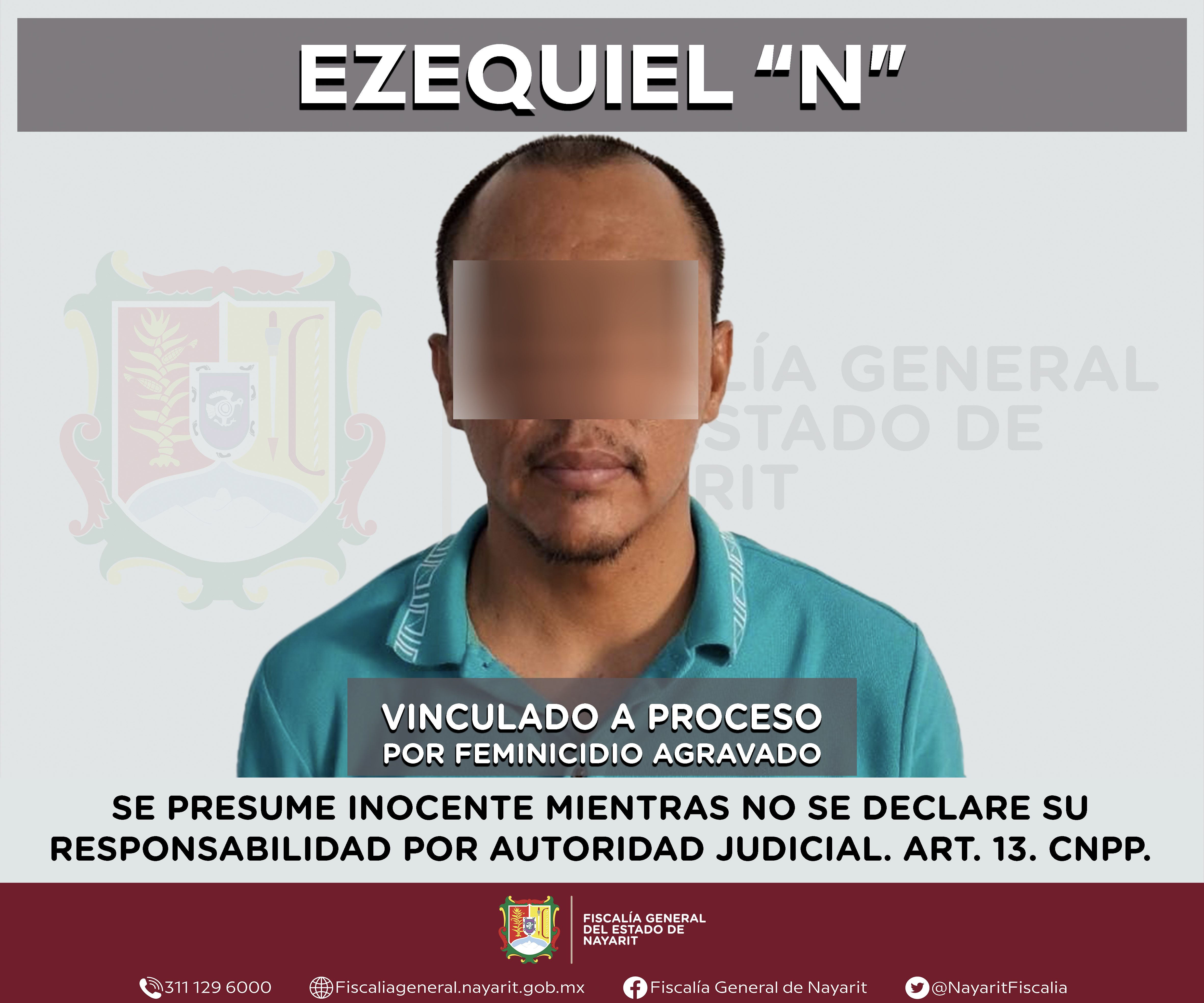 Tepic, Nayarit; 14 de abril de 2025.- La Fiscalía General del estado de Nayarit informa que un Juez de Control dictó auto de vinculación a proceso contra Ezequiel “N”, por su probable responsabilidad en el delito de feminicidio agravado, derivado ...
