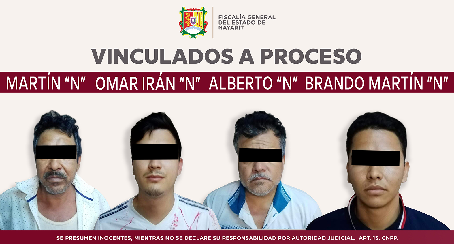 Tepic, Nayarit; lunes 6 de junio de 2022.- La Fiscalía General del Estado a través de la Unidad de Investigación de Robo y Asaltos, logró auto de vinculación a proceso contra Martín “N”, Omar Irán “N”, Alberto “N” y Martín Brando “N...