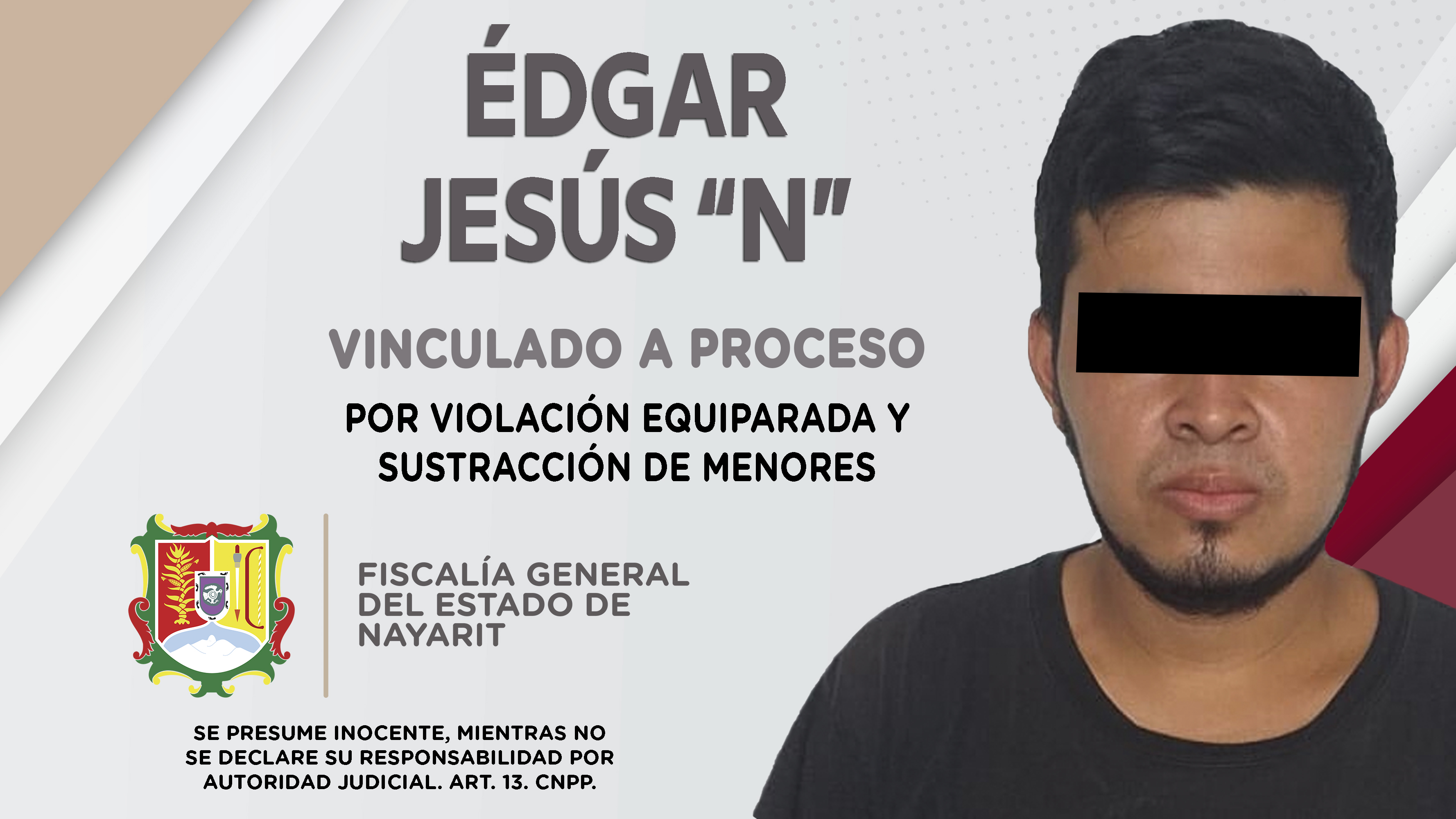 • El imputado presuntamente sustrajo sin causa justificada y sin el permiso de sus padres a una menor de 13 años de edad\r\n \r\nTepic, Nayarit; 2 de julio de 2022.- La Fiscalía General del es...