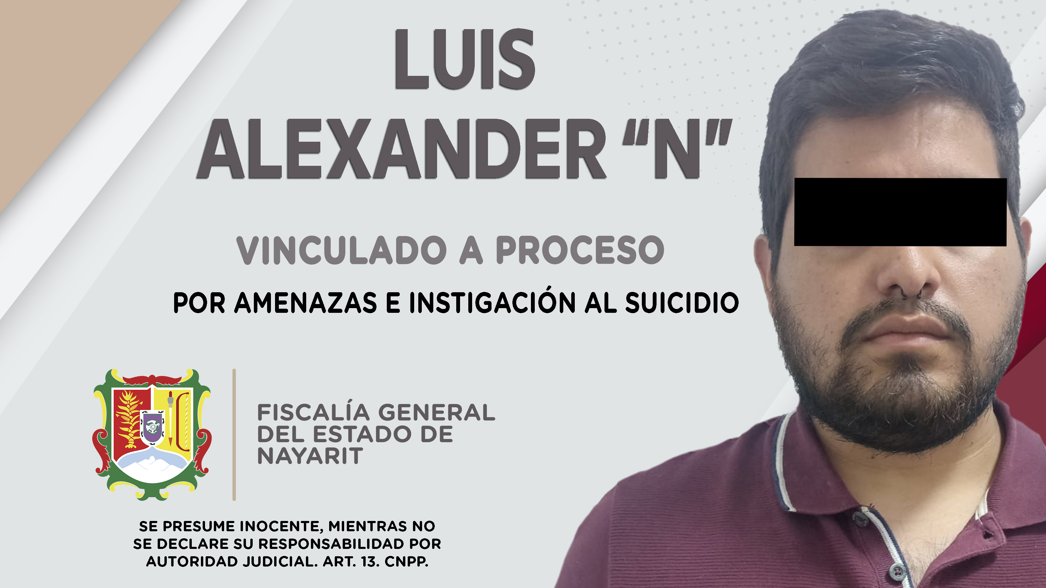 • Luis Alexander “N” presuntamente amenazó a estudiante y a comunidad de la Normal Superior de Nayarit\r\n\r\nTepic, Nayarit; viernes 8 de julio de 2022.- La Fiscalía General del Estado logró auto de vinculación a proceso contra Luis Alexander ...
