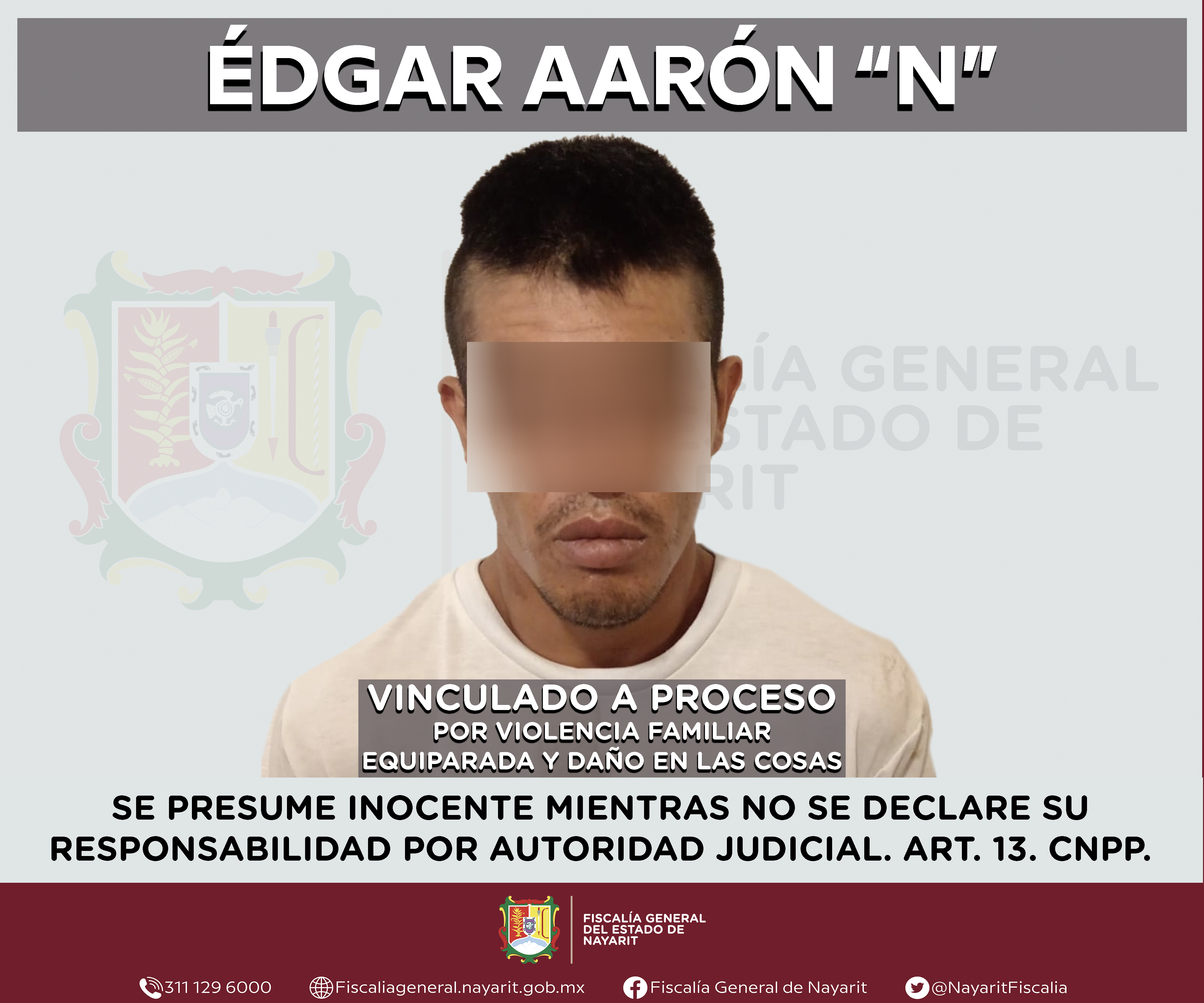 Tepic, Nayarit; miércoles 28 de agosto de 2024.- La Fiscalía General del Estado obtuvo por parte de un Juez de Control auto de vinculación a proceso contra Édgar Aarón “N”, por su probable responsabilidad penal en hechos que para la ley constitu...