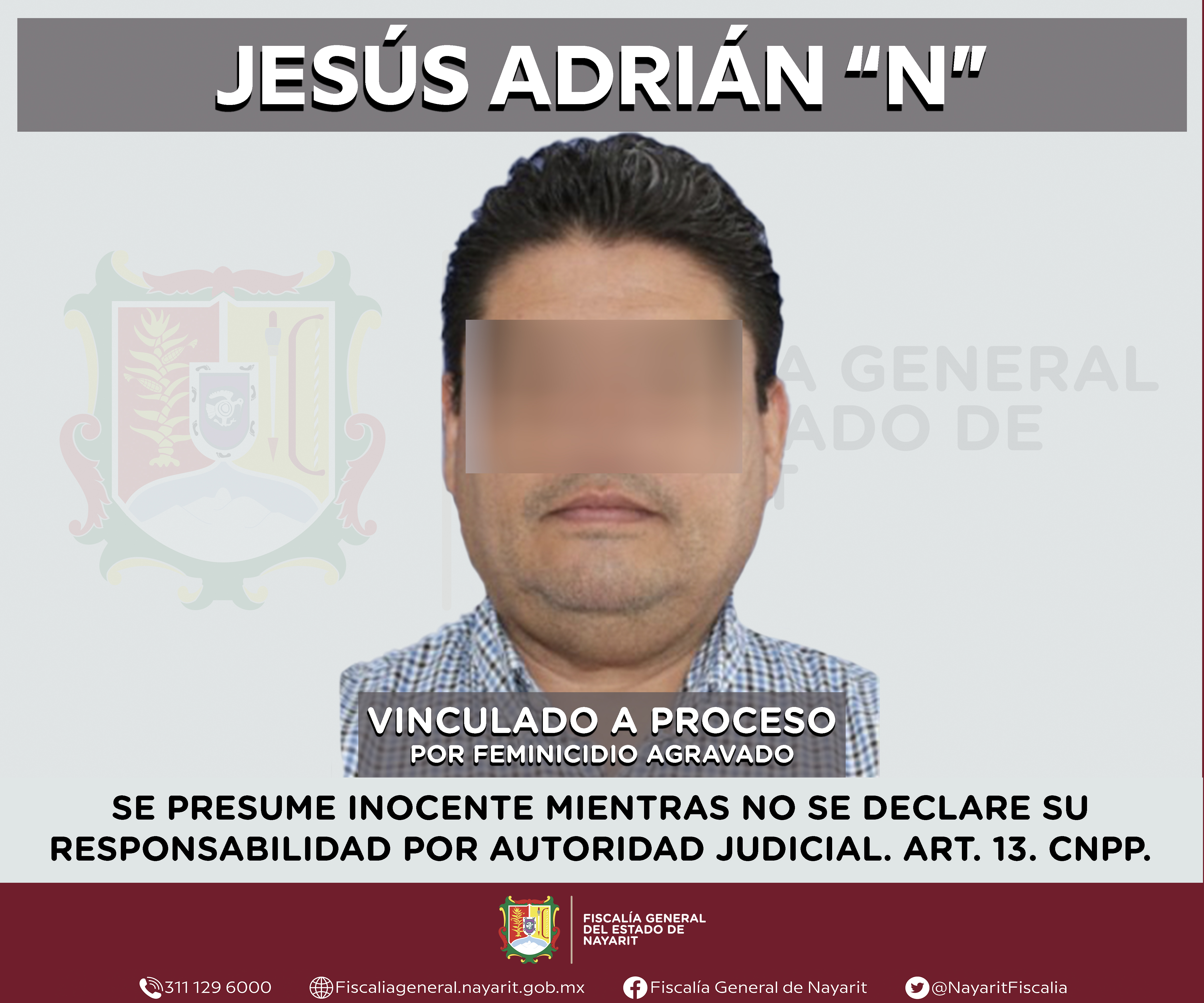 Tepic, Nayarit; viernes 6 de septiembre de 2024. - La Fiscalía General del Estado logró que un Juez de Control vincule a proceso a Jesús Adrián “N”, por su probable participación en el delito de feminicidio agravado, según lo previsto y sancion...