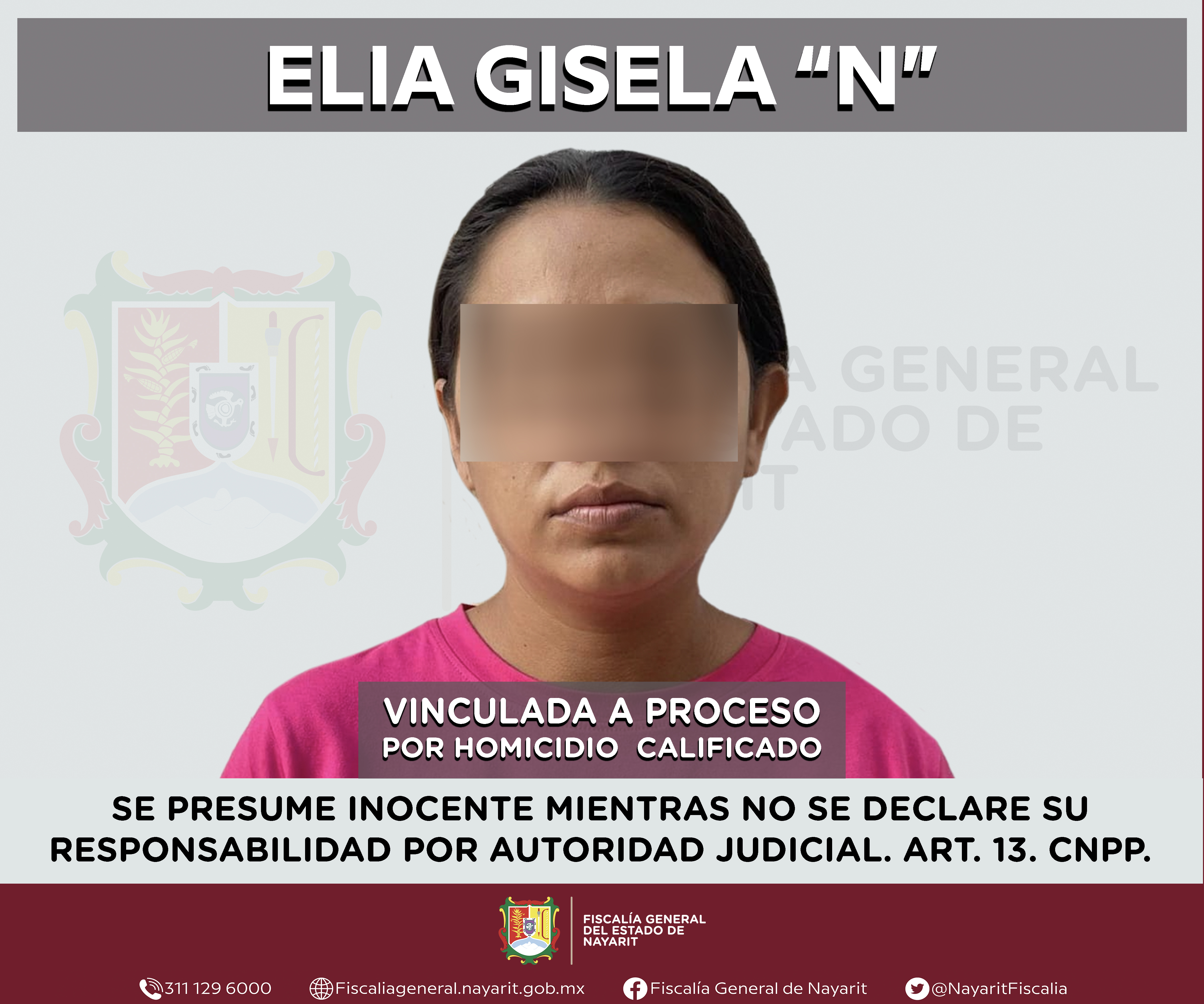 ▪ A la imputada se le acusa de privar de la vida a un elemento en activo de la Guardia Nacional\r\n \r\nTepic, Nayarit; sábado 16 de noviembre de 2024.- La Fiscalía General del estado de Nayarit informa que el día 6 de octubre del presente año s...