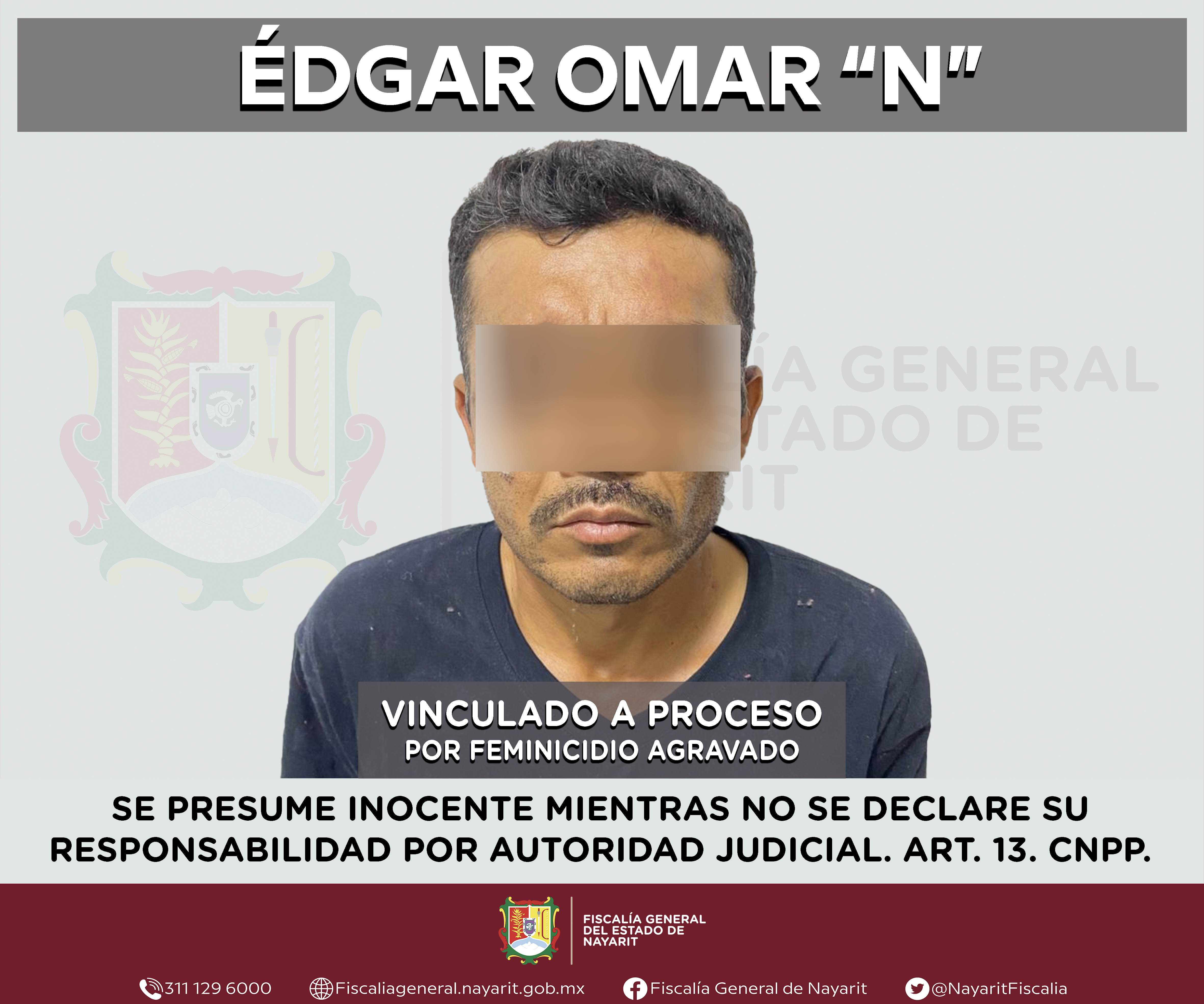 Tepic, Nayarit; 24 de diciembre de 2024.- La Fiscalía General del Estado informa que se logró la vinculación a proceso de Édgar Omar “N”, por su probable participación en el delito de feminicidio agravado, conforme a lo previsto y sancionado en ...