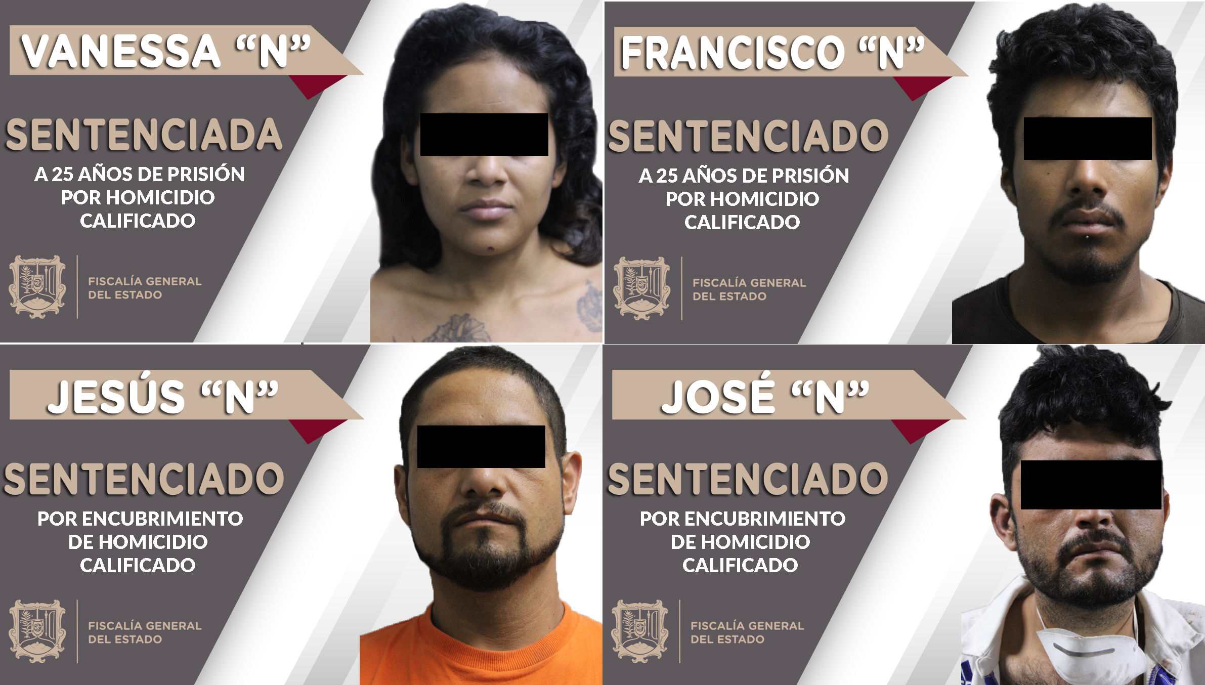 • Vanessa “N” y Francisco “N” fueron sentenciados a 25 años por homicidio calificado, mientras que a Jesús “N” y José “N” se les condenó a 4 años de prisión por encubrimiento de homicidio calificado\r\n\r\nTepic, Nayarit; 24 de no...